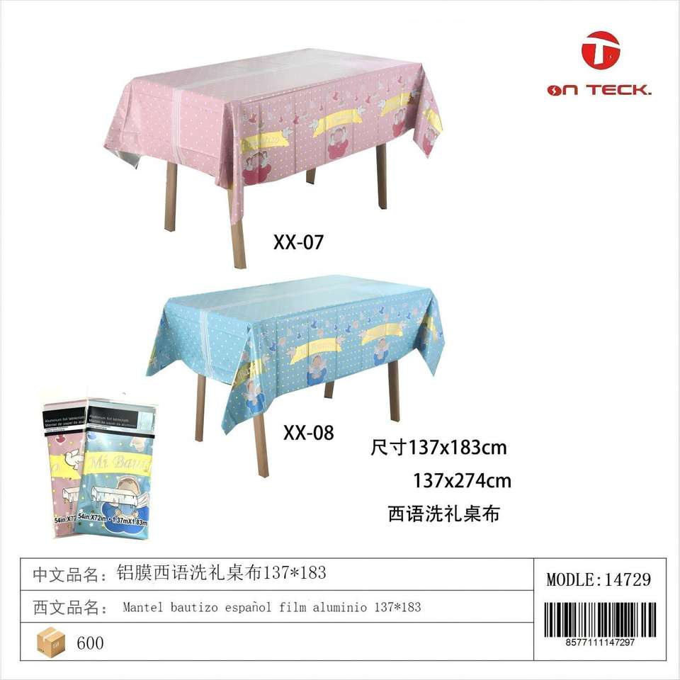 ผ้าปูโต๊ะอลูมิเนียมฟอยล์ลายพิมพ์หลากสีสำหรับงานพิธีศีลจุ่มสเปน ขนาด 137x183 ซม. ยี่ห้อ On Teck Sa De Cv เกรดสำหรับอาหาร ใช้ตกแต่งงานปาร์ตี้