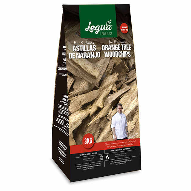 เศษไม้ส้ม (ไม้เนื้อแข็ง) ยี่ห้อ LEGUA จากสเปน บรรจุถุง 3 กก. สำหรับทำบาร์บีคิวและรมควัน รวดเร็วและสะอาด