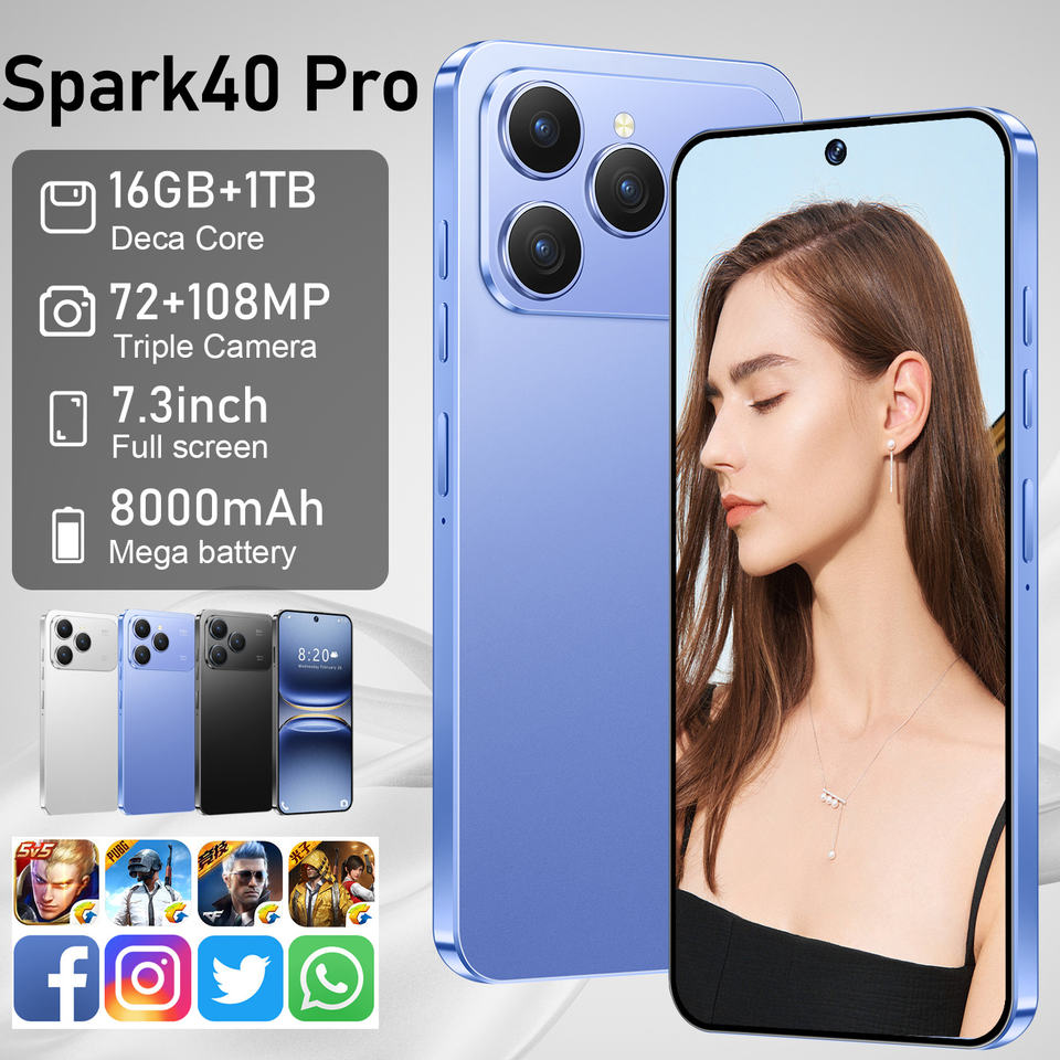 Spark 40 Pro สมาร์ทโฟนเรือธงราคาประหยัด ประสบการณ์หน้าจอเต็มรูปแบบ ดีไซน์บางเฉียบ แรม/รอม 16GB+1TB แบตเตอรี่ 8000mAh ชาร์จเร็ว 10-19W รองรับ LTE CDMA