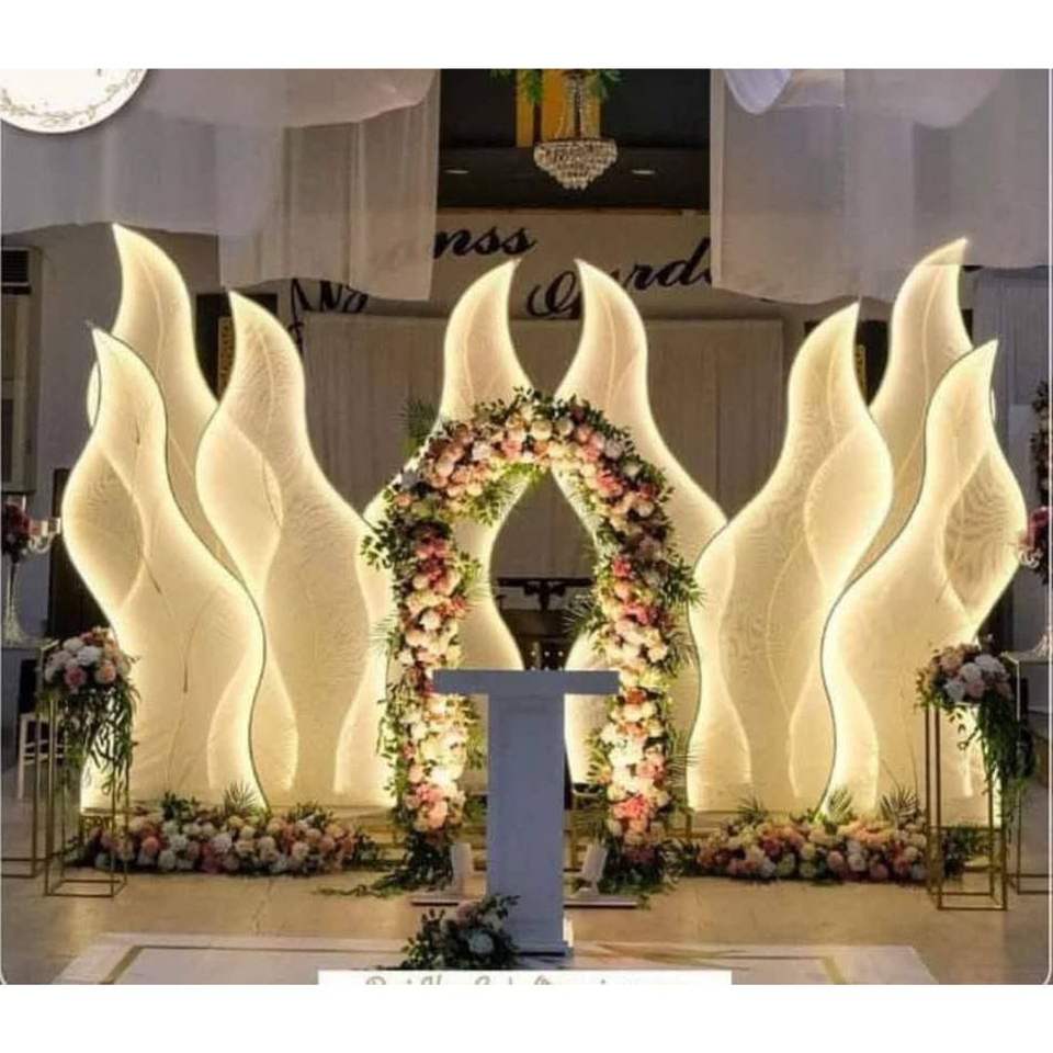 ประตูซุ้มดอกไม้ที่เปล่งประกายในสวนประดับด้วยความสง่างามที่ส่องแสงสำหรับงานแต่งงานและทางเข้าที่สวยงาม