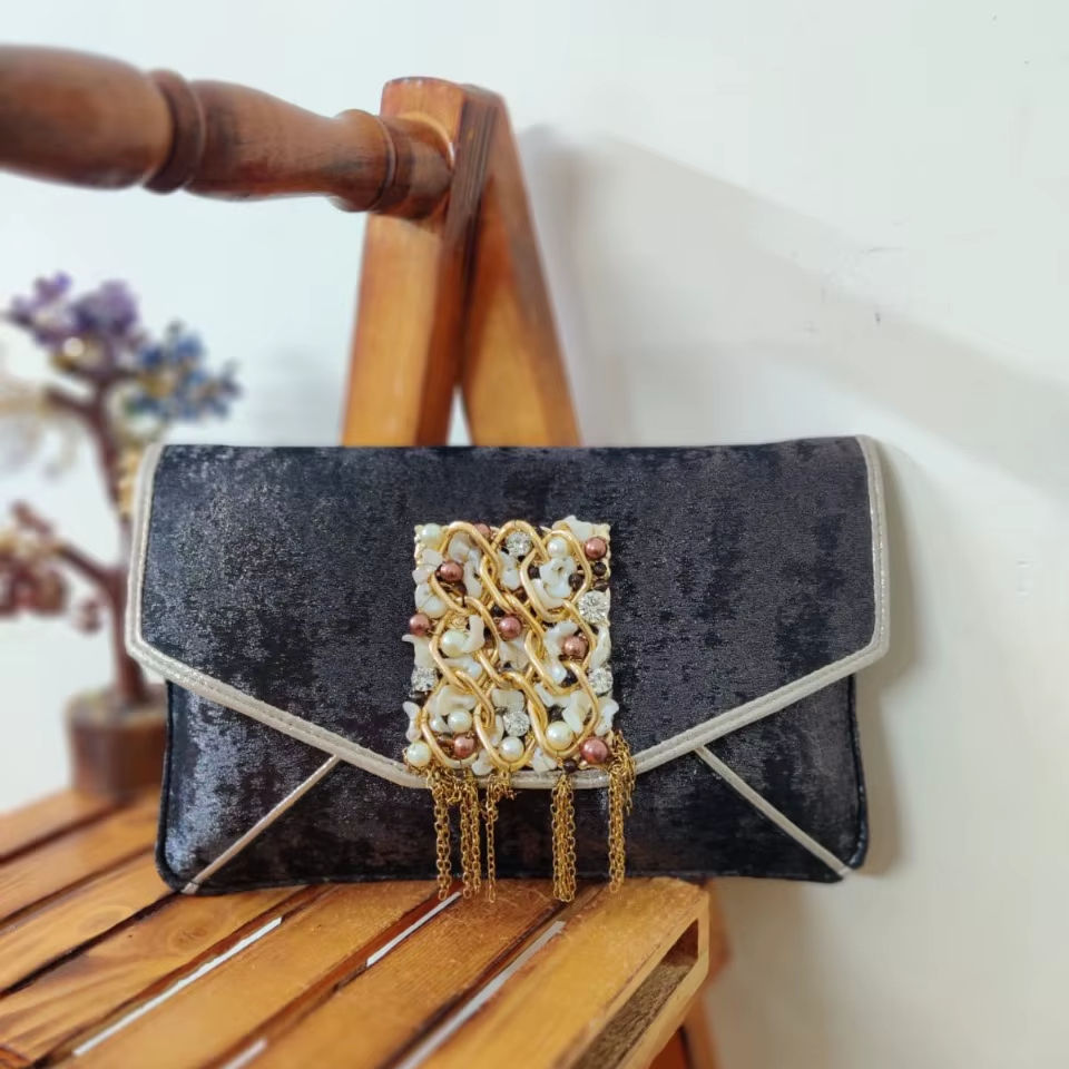 กระเป๋า, โซ่, ไข่มุก, ปักผ้า