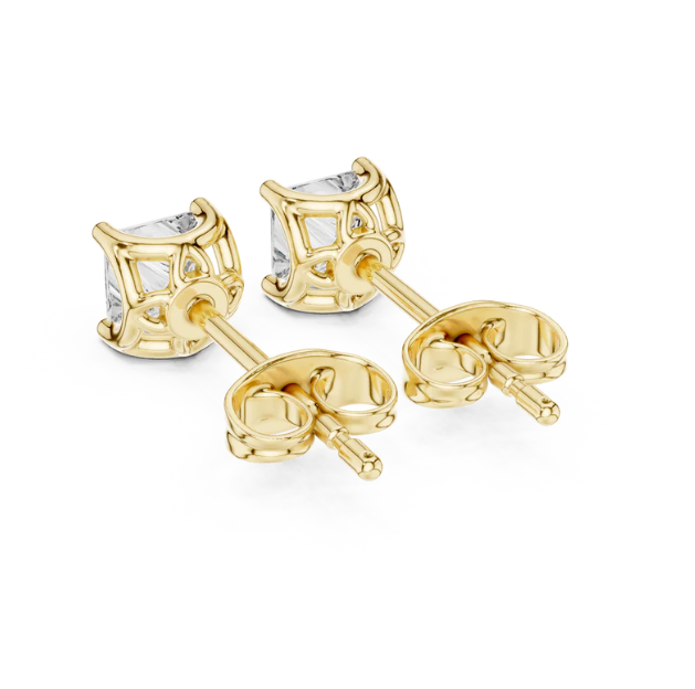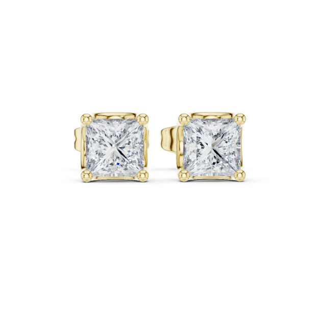 ต่างหูเม็ดเดี่ยวประดับเพชรรูปเจ้าหญิงสีเหลืองทองประกาย14K พร้อมการตั้งค่าสี่ง่ามที่ปลอดภัยแบบคลาสสิกจากอินเดีย