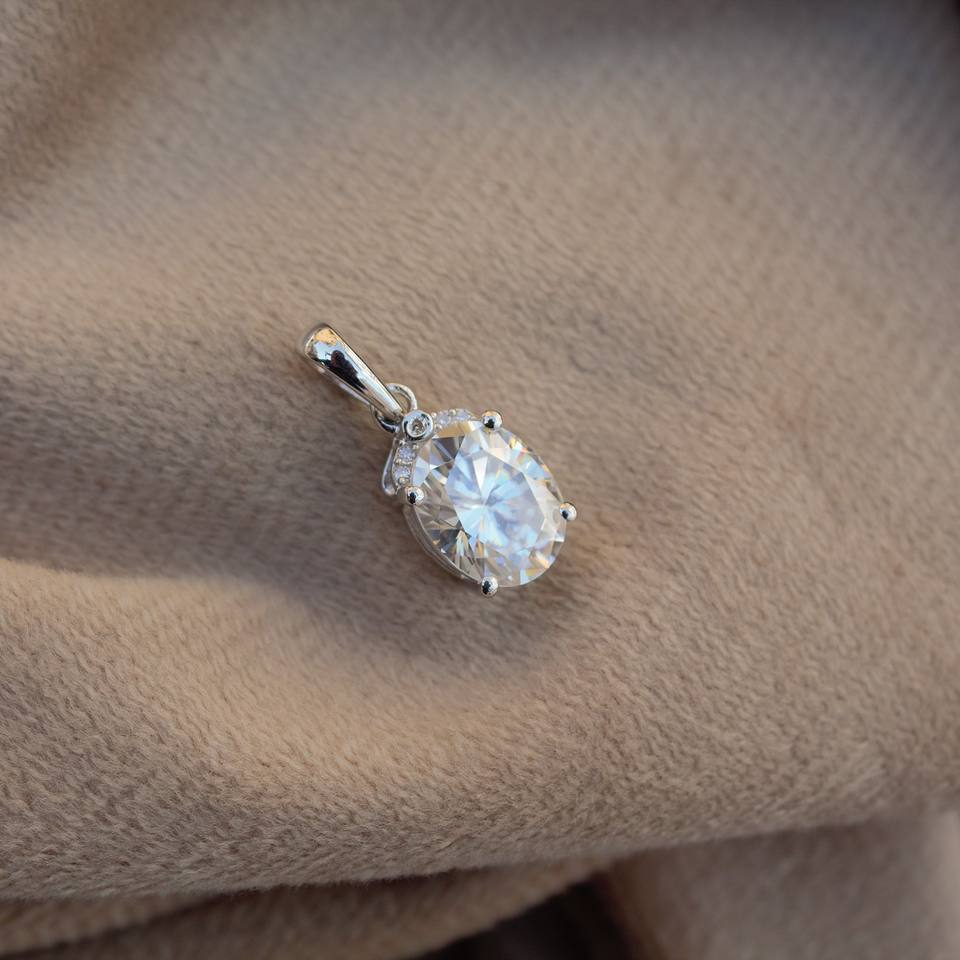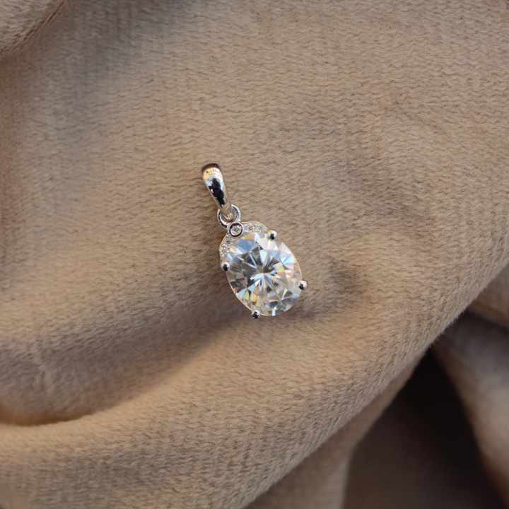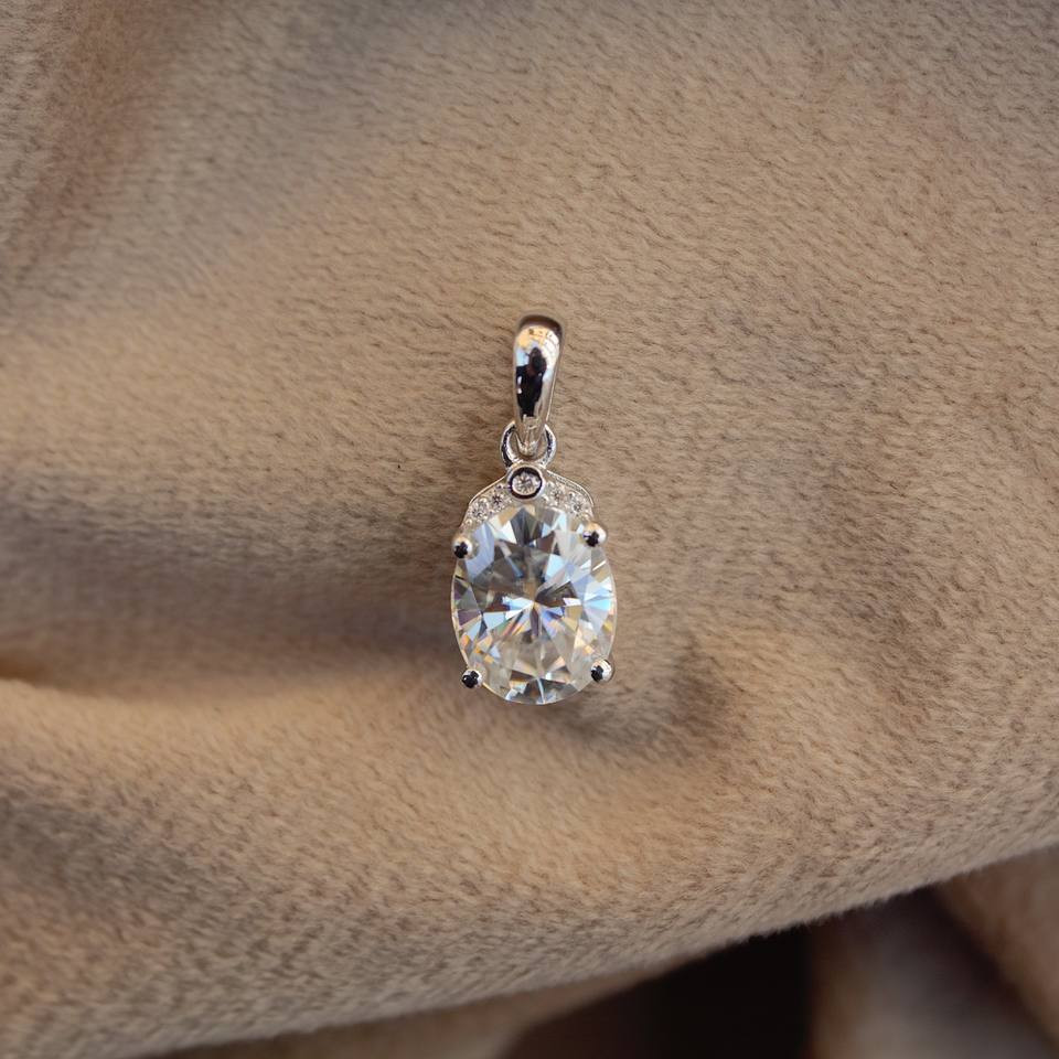 จี้เพชรโมอิสรูปวงรีประกายแบบคลาสสิกจี้เพชรเม็ดเดี่ยวสีเงิน925เครื่องประดับหินสีขาวสเตอร์ลิงสำหรับเธอ