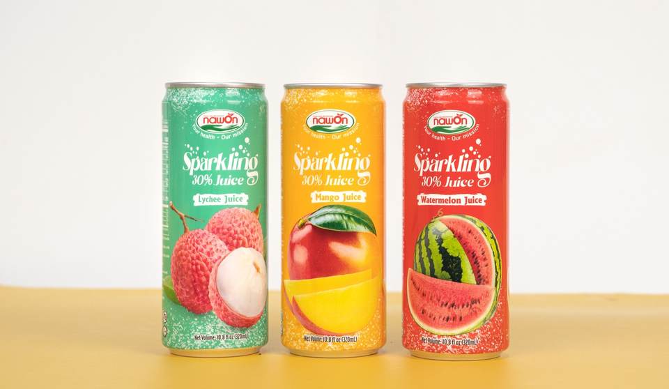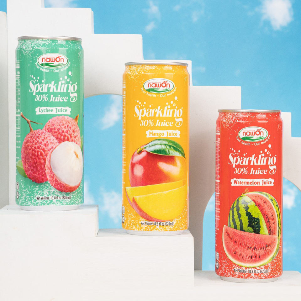 น้ำผลไม้สปาร์คกลิ้งผสมน้ำทับทิม 320 มล. น้ำผลไม้กระป๋อง นาวอน เครื่องดื่มอัดลม เวียดนาม น้ำอัดลม อาหารและเครื่องดื่ม