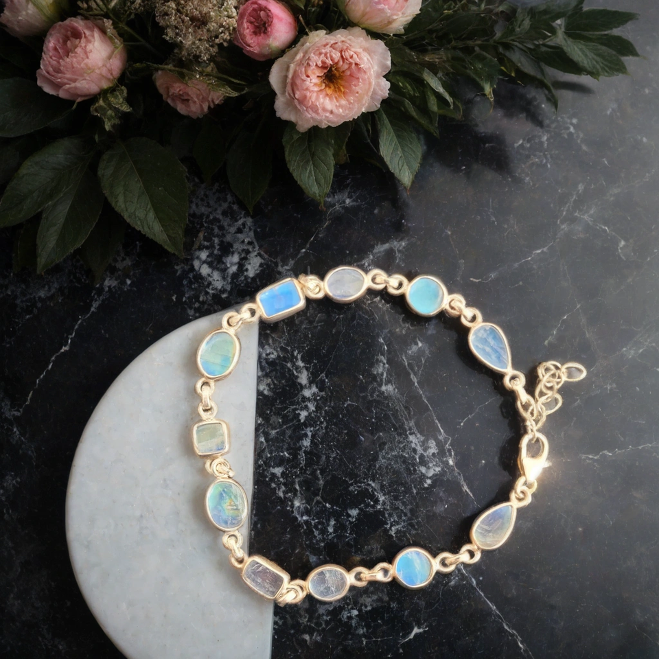 สร้อย925แท้ประกายเงินสเตอร์ลิงแท้สีรุ้งประดับพลอยมูนสโตนสำหรับสตรีเครื่องประดับแฮนด์เมด