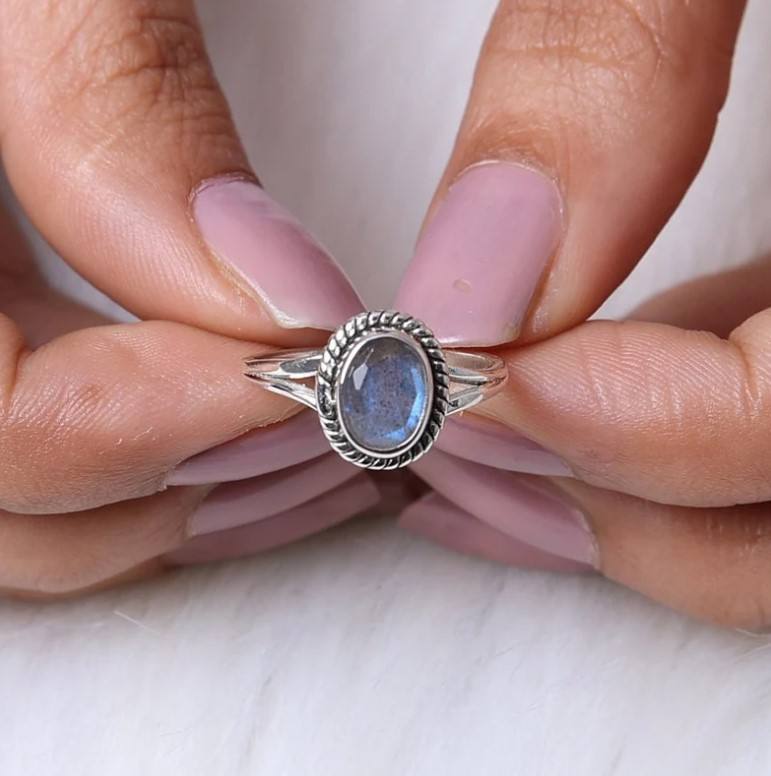 ชื่อผลิตภัณฑ์:แหวนเงินแลบราโดไรต์เจียระไน