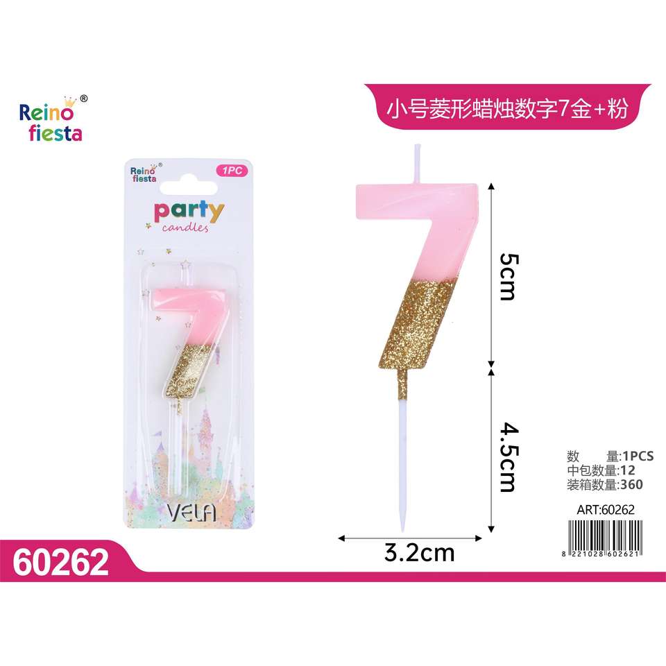 เทียนขี้ผึ้งตกแต่งหมายเลข7สีชมพูทองประกายสำหรับงานเลี้ยงและงานเฉลิมฉลองสำหรับกล่องอีสเตอร์และปีใหม่