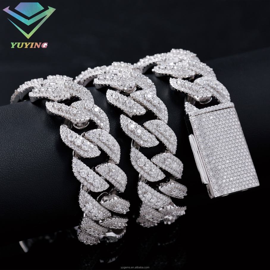 สร้อยคอทองชุบแบบหนา 20 มม. 22 มม. ประดับเพชรโมอิสซาไนต์ขนาดใหญ่ สร้อยคิวบันลิงค์ S925 ประดับเพชร