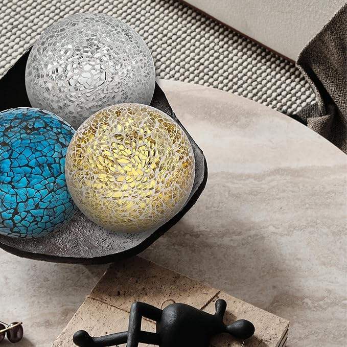 ลูกบอลประดับต้นคริสต์มาสทรงกลมแก้วโมเสคหรูหราทำมือ ประดับไฟ ตกแต่งต้นคริสต์มาสอย่างมีศิลปะ