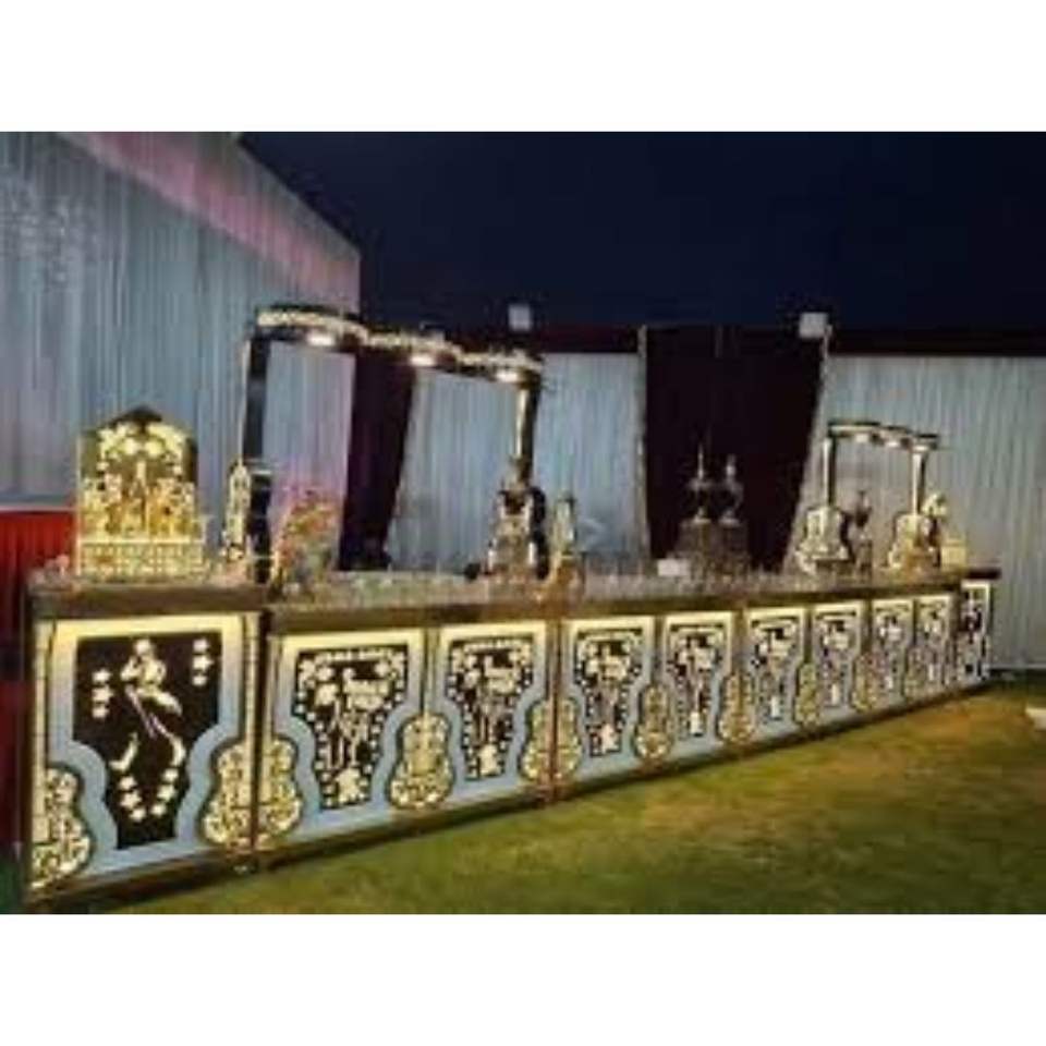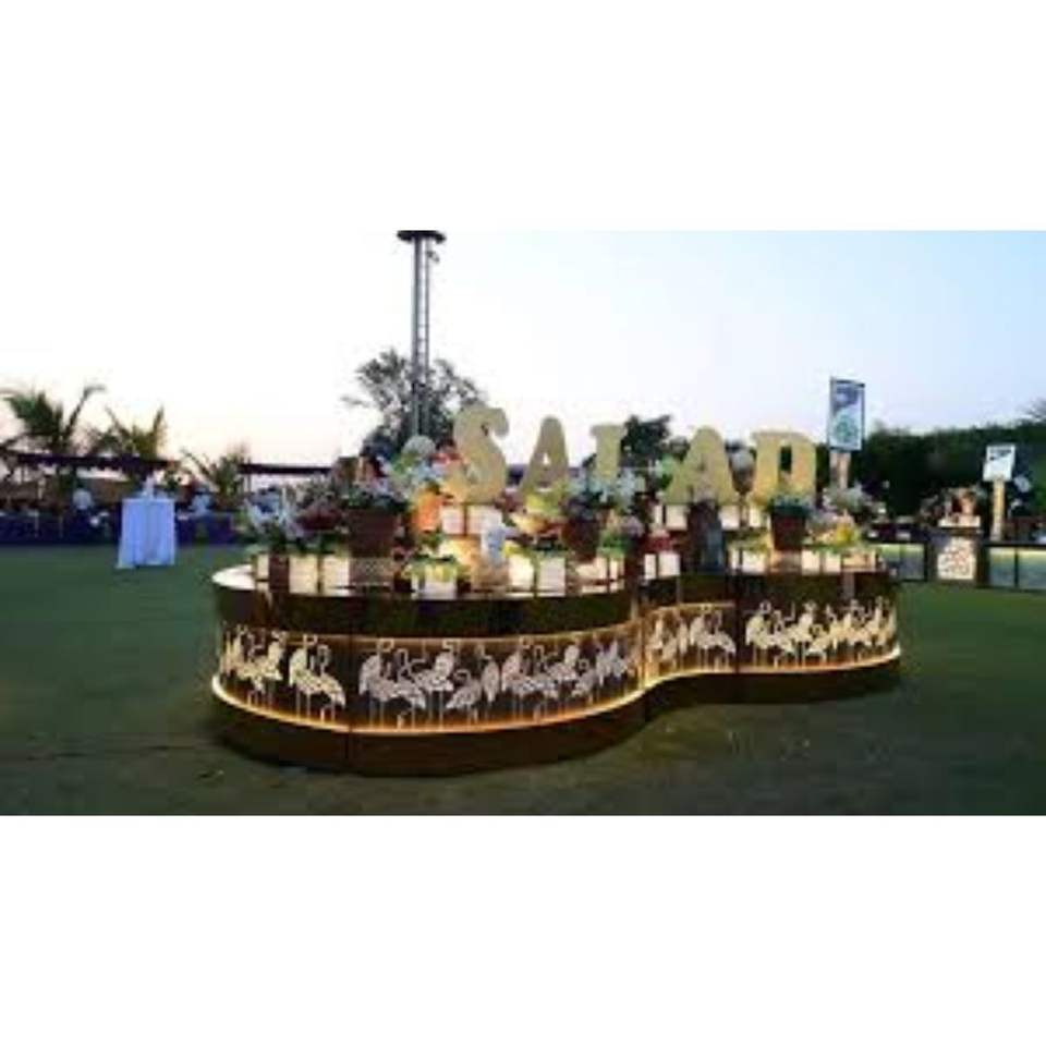 เป็นประกายเคาน์เตอร์จัดเลี้ยงอาหารสแตนเลสหรูหราพร้อมไฟ LED สำหรับงานแต่งงานโรงแรมและงานอีเวนต์