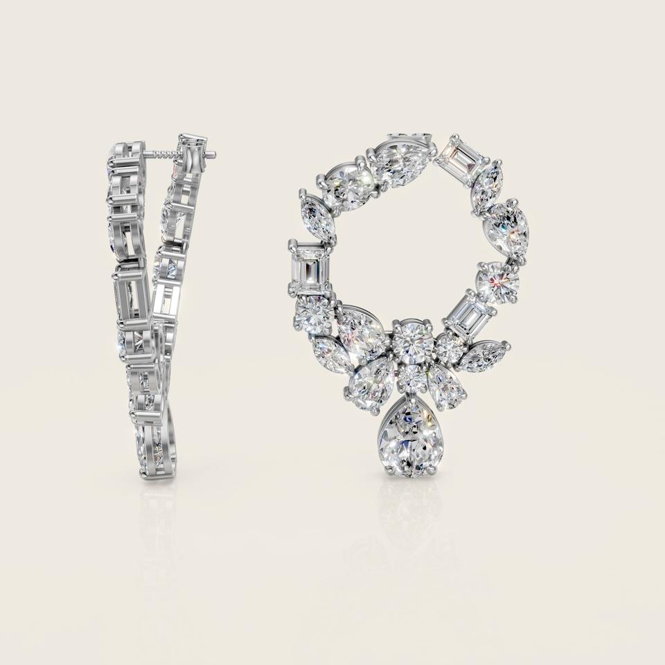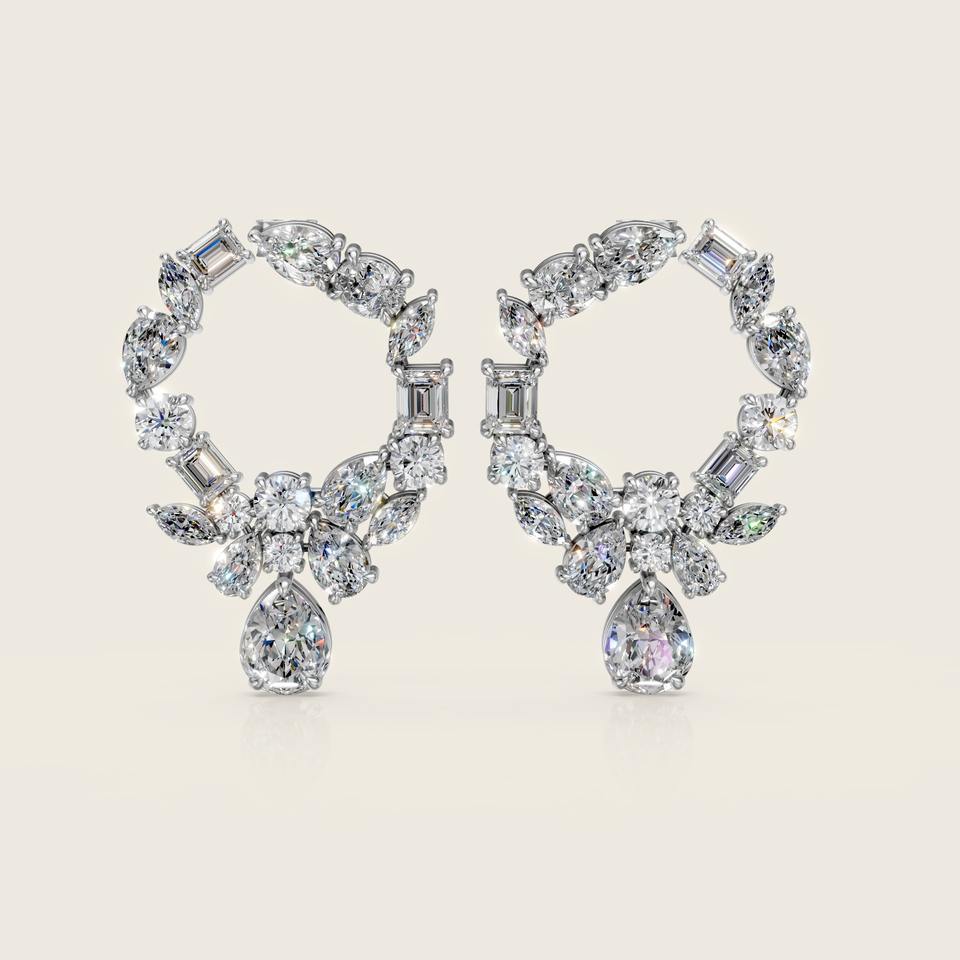 ต่างหูเพชรทรงหลายเหลี่ยมระยิบระยับ ดีไซน์หรูหราสำหรับผู้หญิง