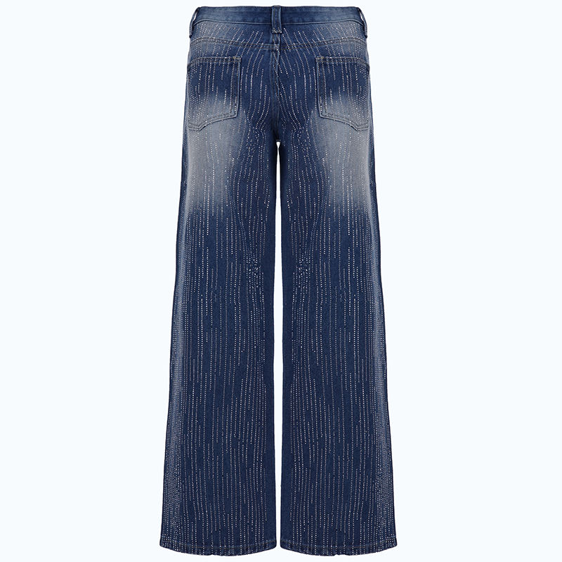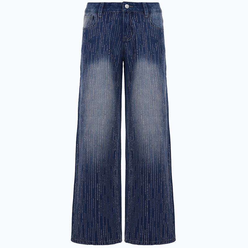 กางเกงยีนส์ขาตรงประดับคริสตัลระยิบระยับ ระบายอากาศได้ดี สไตล์สตรีทแวร์ ทรงหลวม ใส่สบาย ดีไซน์เรียบง่าย ลายเรียบ