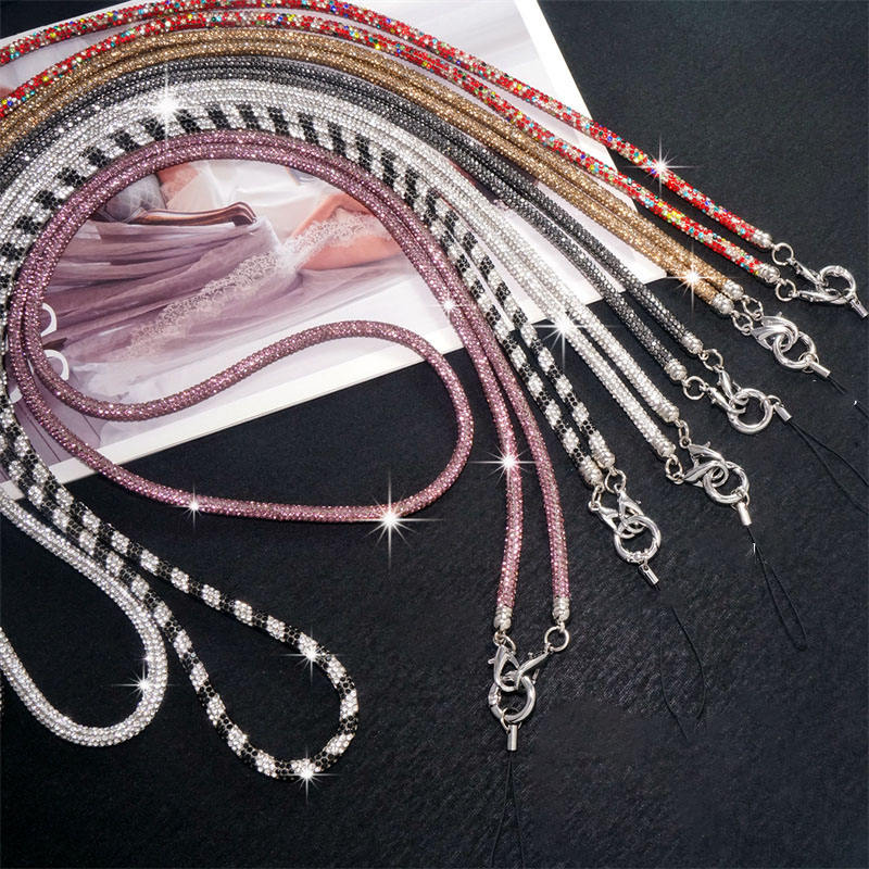 สายคล้องข้อมือประดับพลอยเป็นประกายสำหรับโทรศัพท์มือถือสายคล้องข้อมือสุดหรูสายคล้องคาดลำตัวแบบติดเพชรทั้งเส้น