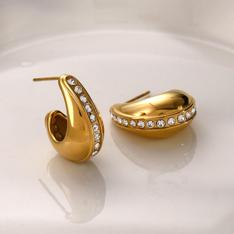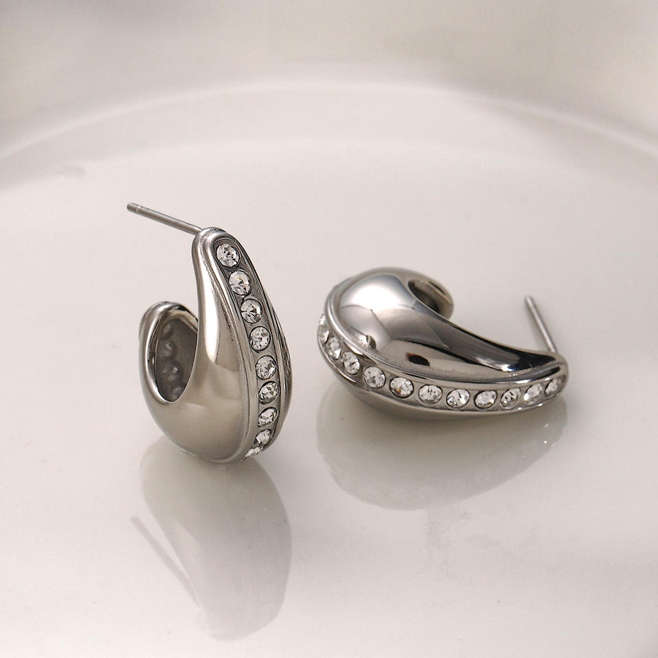 ต่างหูห่วงสแตนเลสสตีลประดับเพชรทรงสี่เหลี่ยมสำหรับผู้หญิง