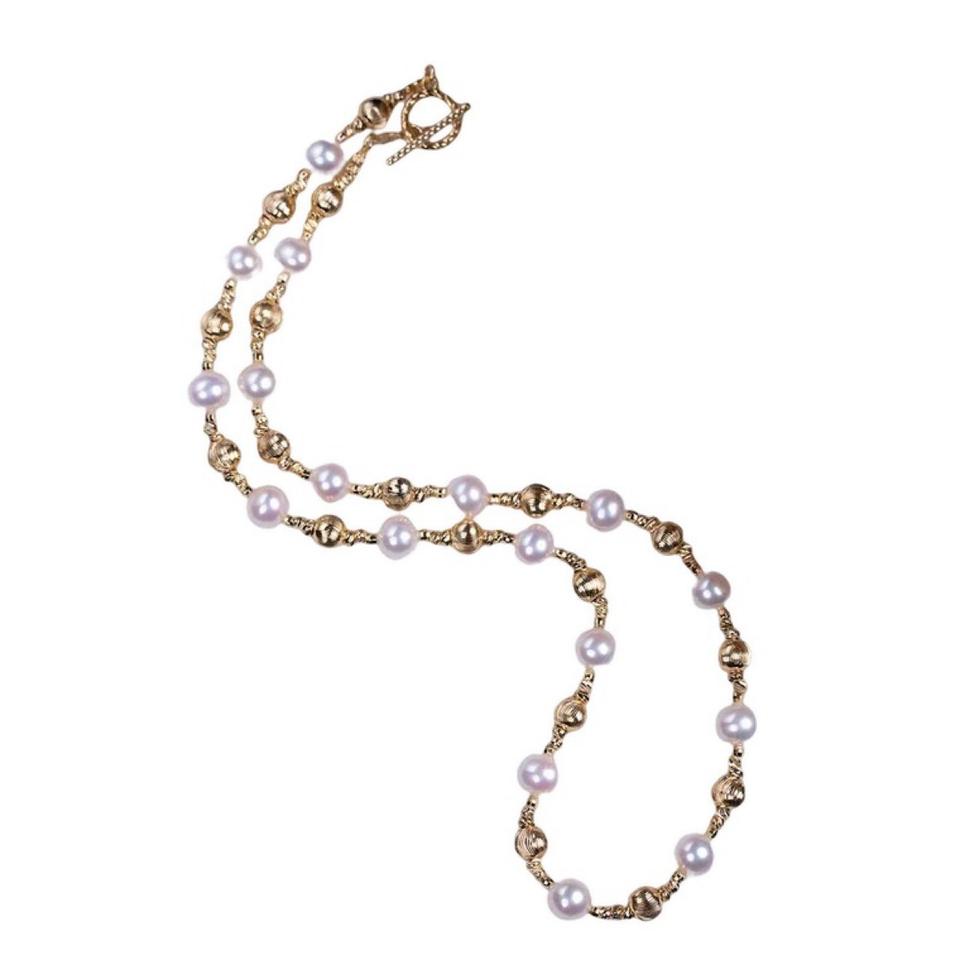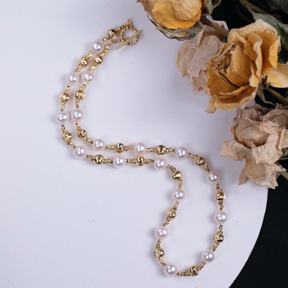 สร้อยคอทอง 14k ประดับมุกน้ำจืดธรรมชาติ ลายดวงดาวระยิบระยับ ดีไซน์ใกล้เคียงมุก สำหรับใส่กับเสื้อไหมพรมฤดูใบไม้ร่วง/ฤดูหนาว