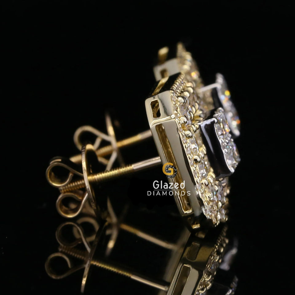ต่างหูสตั๊ดประกายที่ทำจากทองคำ10kt สีเหลืองและห้องปฏิบัติการตัดเพชรที่ปลูกใน VVS ชัดเจน