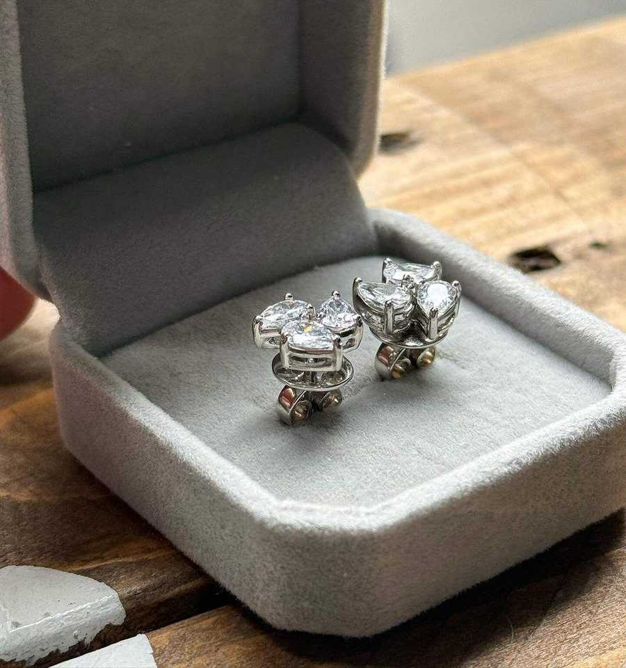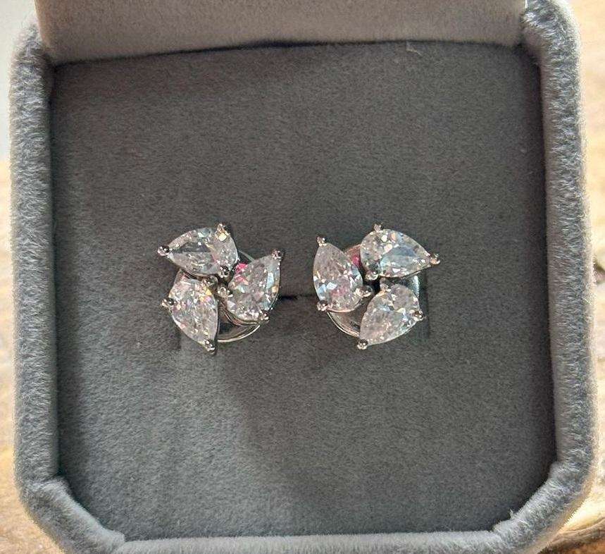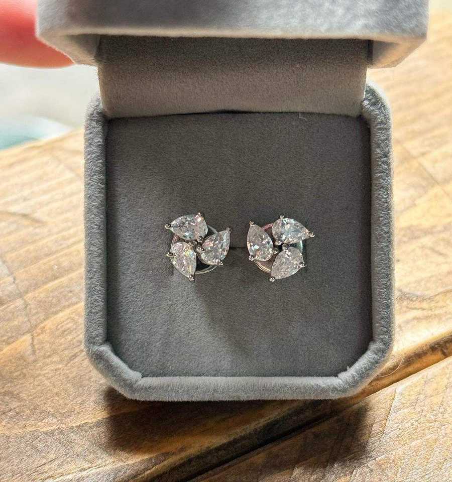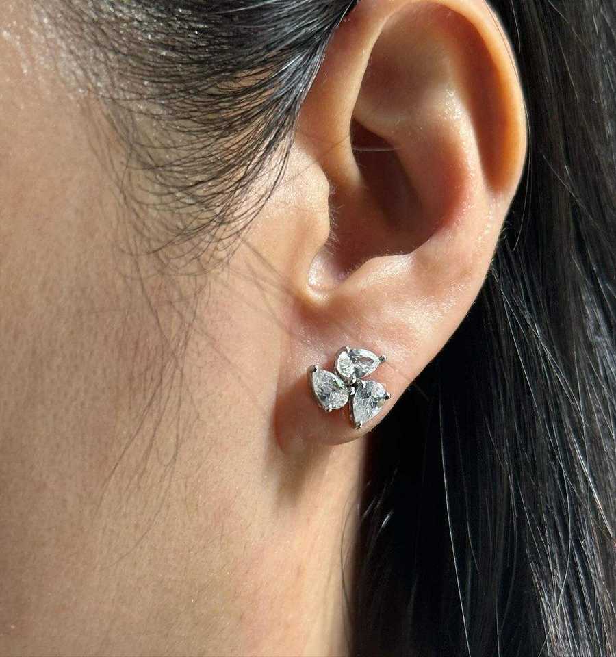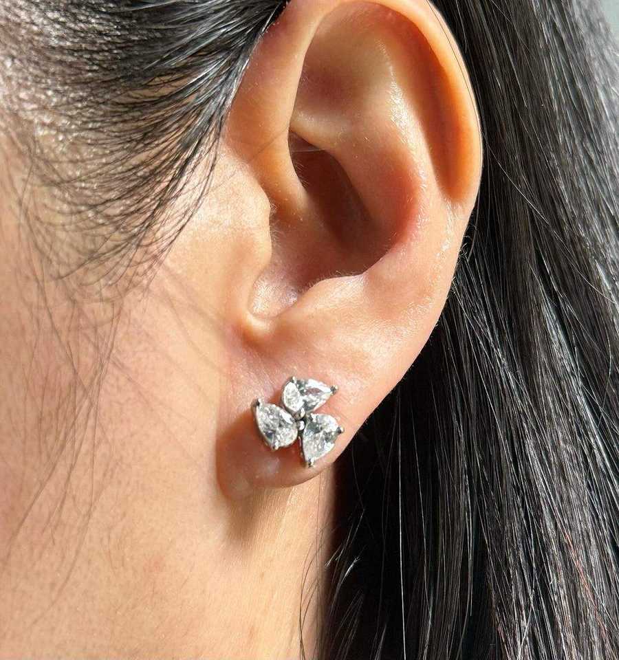 ต่างหูเพชรทรงลูกแพร์สามเม็ด ประดับเพชรเลี้ยงในห้องปฏิบัติการ ดีไซน์แบบห้อย ตัวเรือนทอง 14k หรือเงิน รับรองโดย IGI คุณภาพ DEF VVS VS