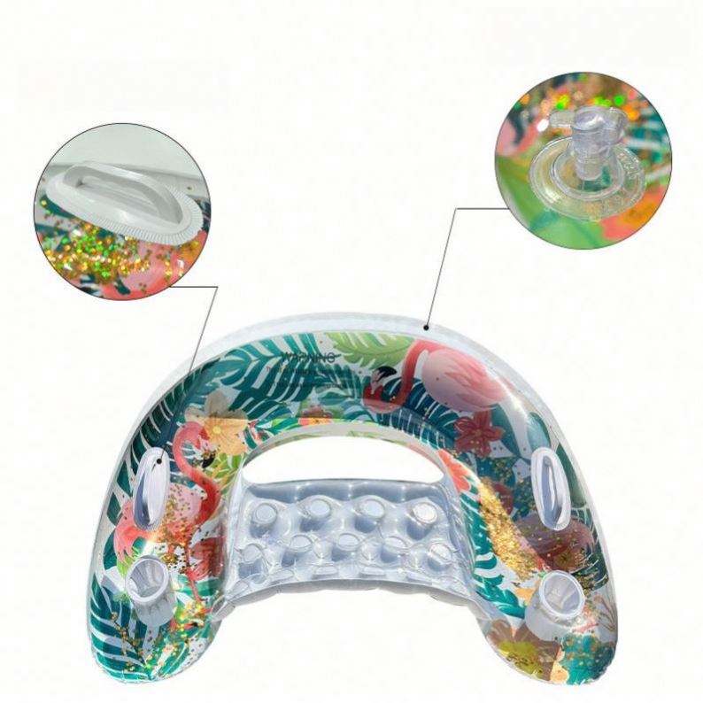 เลือกเลยสี: เก้าอี้ลอยน้ำทรงตัวยู ประดับเลื่อมรูปใบไม้ ลายฟลามิงโก