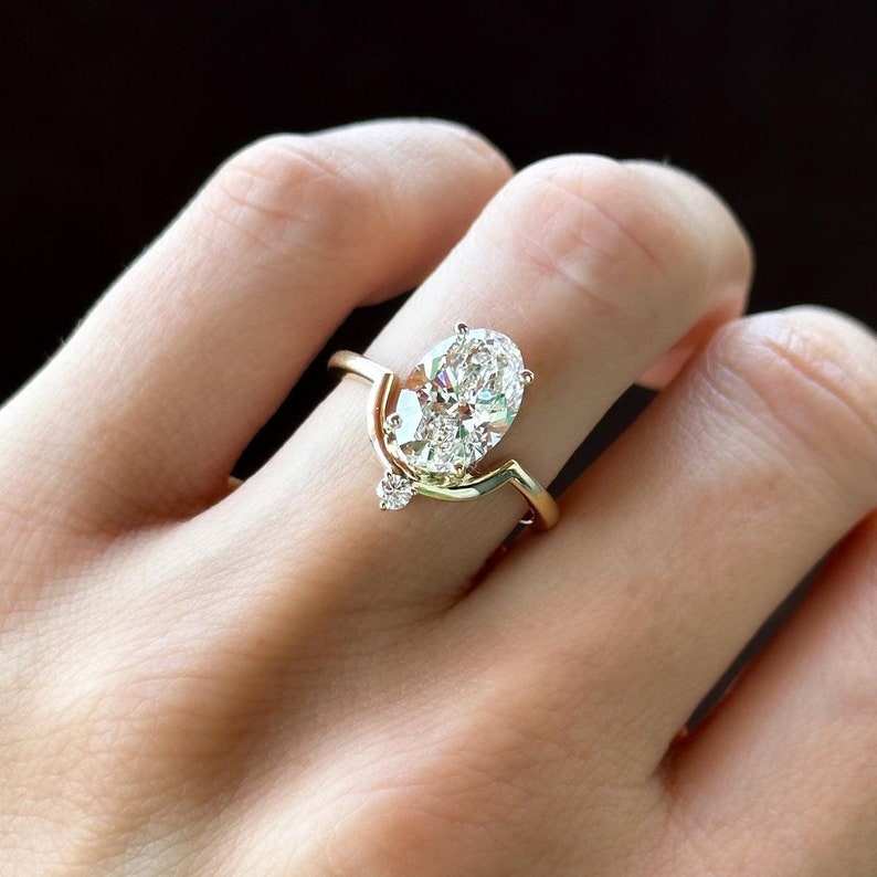 แหวนเพชรทรงรี 2.51 กะรัต ประดับเพชรแล็บโกรว์ ดีไซน์เก๋ไก๋ สำหรับผู้หญิง ทองคำแท้ 14K ของขวัญวันครบรอบสุดหรูสำหรับเธอ
