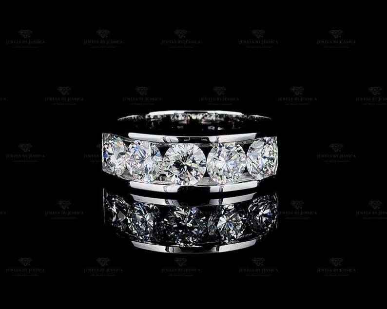 แหวนเพชรโมอิสซาไนต์ทรงกลมประดับห้าเม็ด ดีไซน์วิบวับ สำหรับทุกเพศ ทำจากเงินแท้ 925 เหมาะสำหรับเป็นแหวนแต่งงานสุดพิเศษสำหรับเจ้าสาว