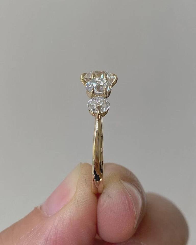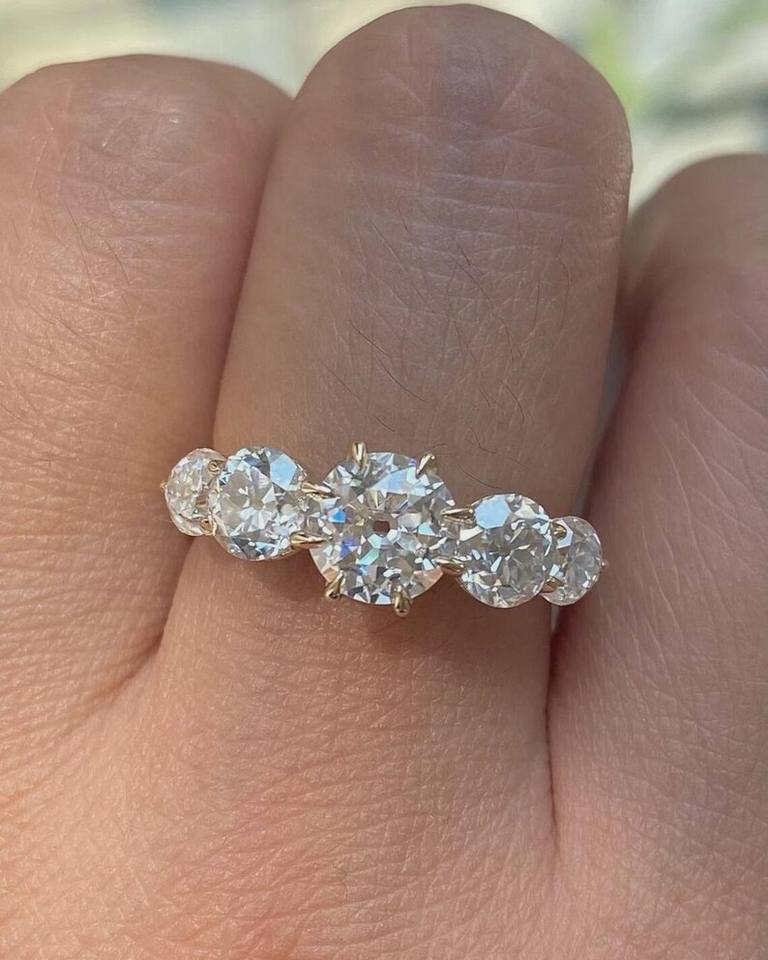 แหวนเพชรโมอิสซาไนต์ทรงกลมประดับห้าเม็ด ชุบทองสำหรับผู้หญิง เงินแท้ 925 ของแท้ ของขวัญแทนคำมั่นสัญญาสำหรับคู่รัก