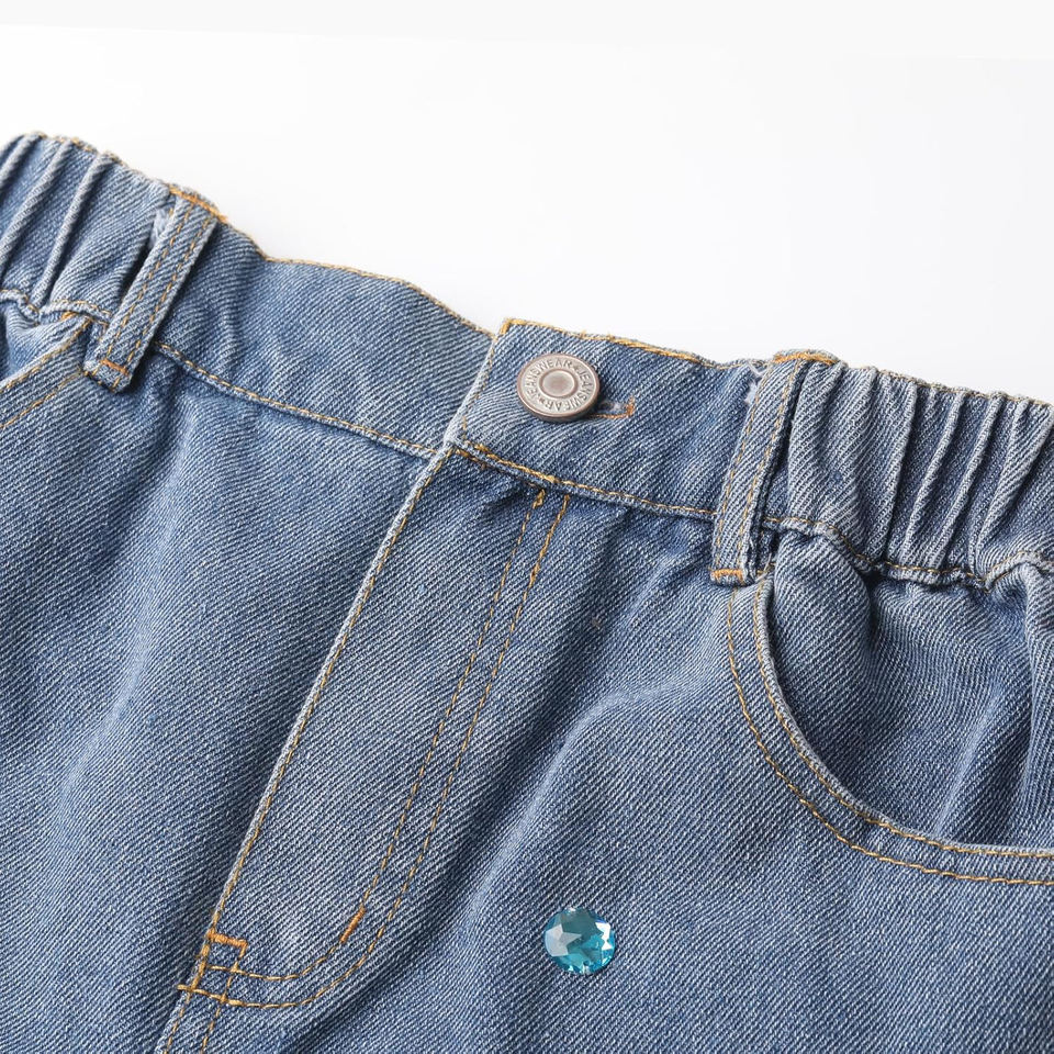 กางเกงยีนส์ขาสั้นประดับเพชรระยิบระยับ แฟชั่นฤดูร้อน เอวสูง กางเกงยีนส์ขาสั้นประดับเพชรแบบสั่งทำสำหรับผู้หญิง