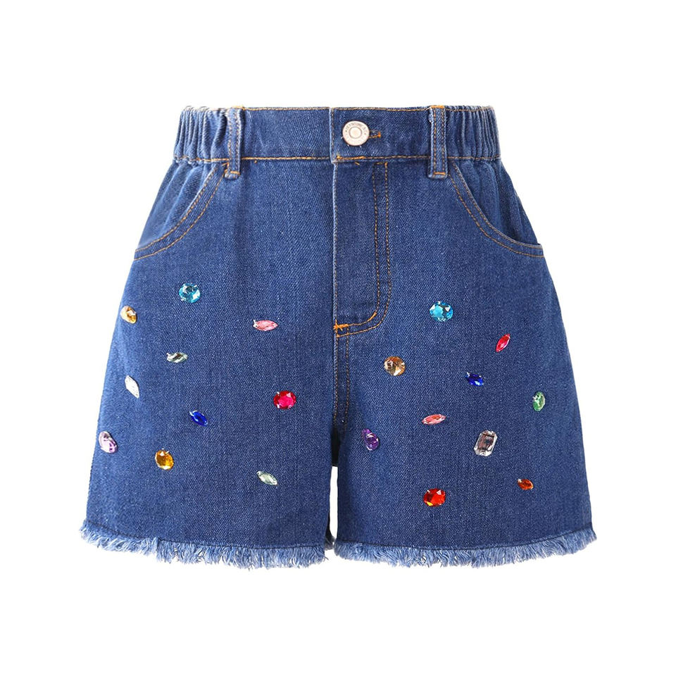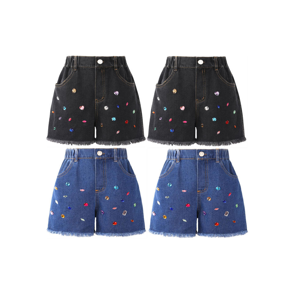 กางเกงยีนส์ขาสั้นประดับเพชรระยิบระยับ แฟชั่นฤดูร้อน เอวสูง กางเกงยีนส์ขาสั้นประดับเพชรแบบสั่งทำสำหรับผู้หญิง