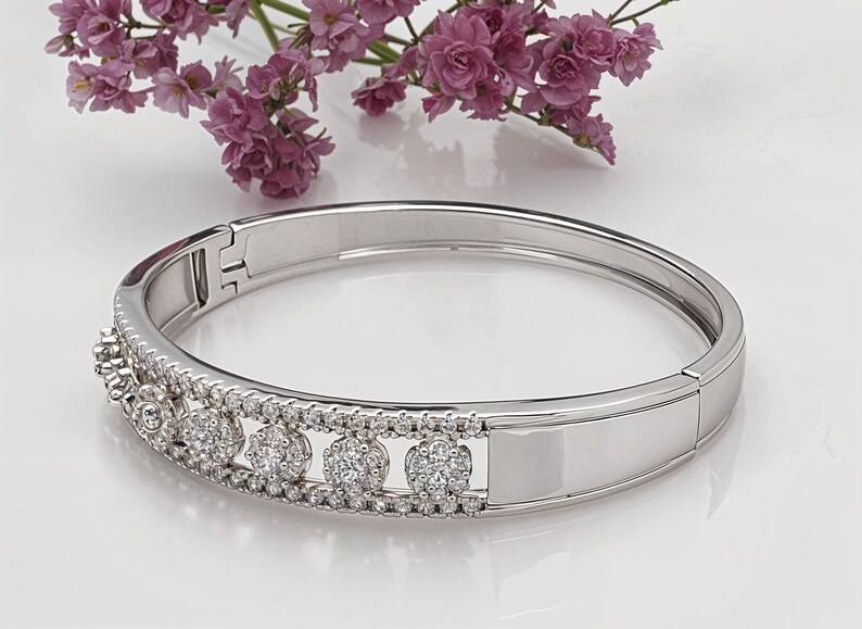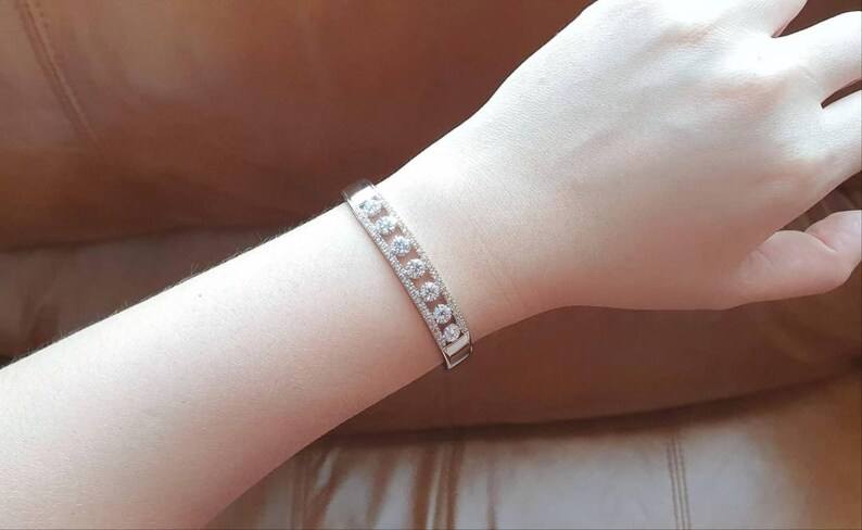 กำไลเพชรมอยส์ซอไนท์ทรงกลมแวววาวกำไลข้อมือกว้างกำไลข้อมือ925เงินสเตอร์ลิงเครื่องประดับสุดหรูสำหรับเป็นของขวัญคู่สัญญา