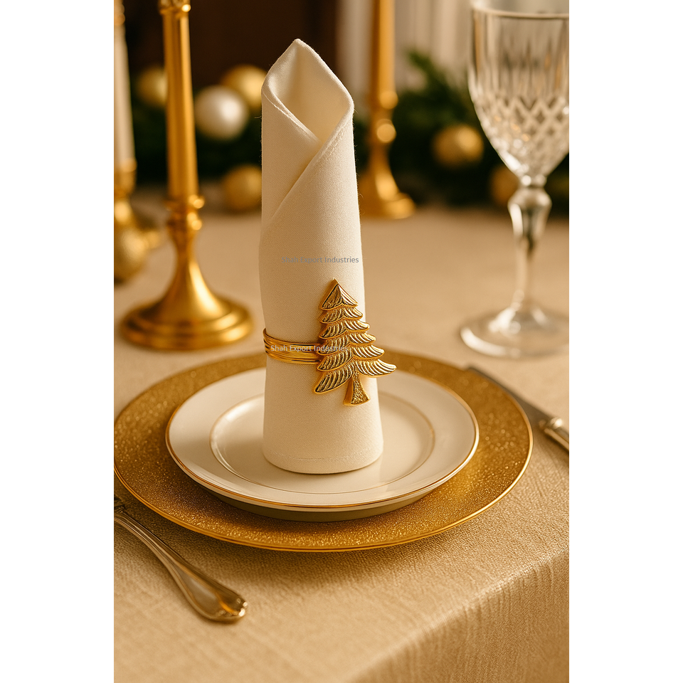 ห่วงใส่ผ้าเช็ดปากโลหะรูปต้นคริสต์มาสสีทองแวววาวและเป็นประกายสำหรับงานคริสต์มาสการจัดโต๊ะอาหารค่ำที่เก็บผ้าเช็ดปาก