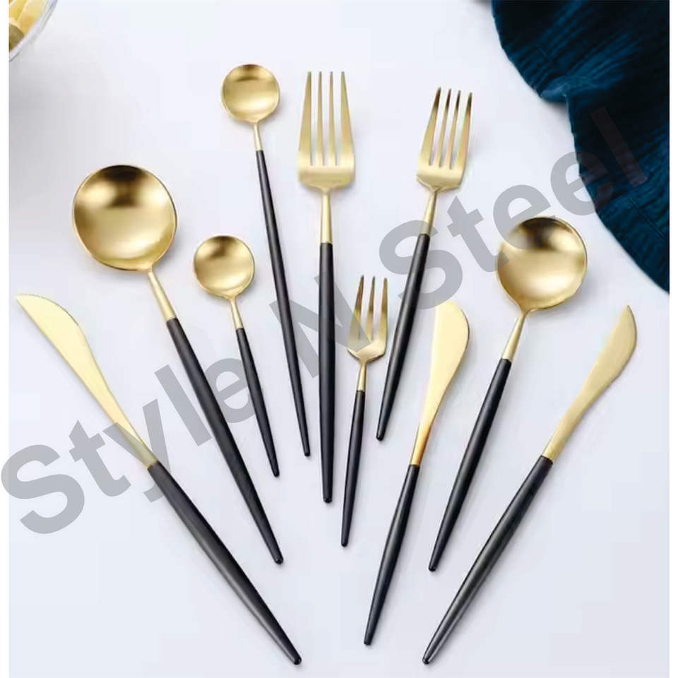 ชุดเครื่องครัวเครื่องครัว8ชิ้นช้อนสแตนเลสสีดำทอง