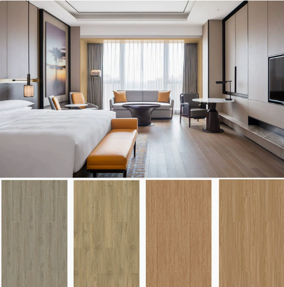 พื้น SPC PVC จากผู้ผลิตจีน ลายไม้เคลือบ UV หลายสี กันน้ำ กันลื่น ระบบคลิ๊กล็อค Unilin หนา 4มม.-6มม.