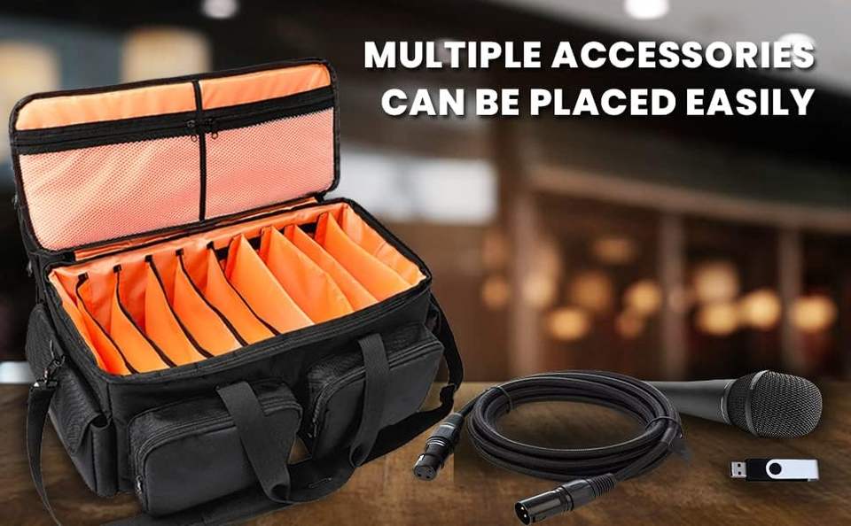 กระเป๋าใส่ของสำหรับเดินทางใส่ของพร้อมช่องแบ่งแบบปรับได้สายกระเป๋าแยกคู่อุปกรณ์เสียงอุปกรณ์เก็บอุปกรณ์ดีเจ