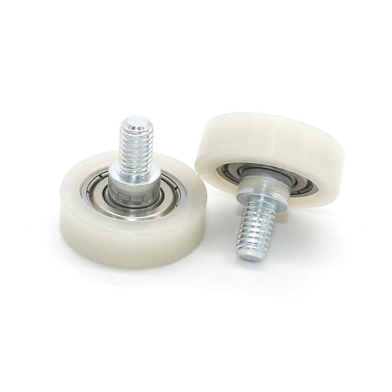 รอกพลาสติกไนลอนวิศวกรรมพิเศษพร้อมลูกกลิ้งเคลือบยางและล้อแบน M6 สำหรับระบบอัตโนมัติประตูและหน้าต่าง