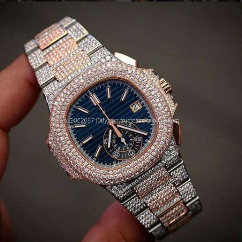 นาฬิกาข้อมือผู้ชายแบบอัตโนมัติเต็มรูปแบบ สองสี ประดับเพชรโมอิสซาไนต์ ขนาด 41 มม. หน้าปัดแบบอนาล็อก สายสแตนเลสสตีล ขนาด 20 มม.
