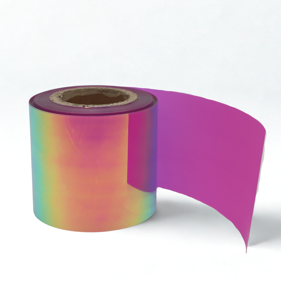 ฟิล์มโพลีเอสเตอร์พิเศษแบบโฮโลแกรม R 600 สี ฟิล์ม PET คุณภาพพรีเมียม สำหรับงานพิมพ์ฉลาก บรรจุภัณฑ์ ตกแต่ง สำหรับเครื่องปักเลื่อม