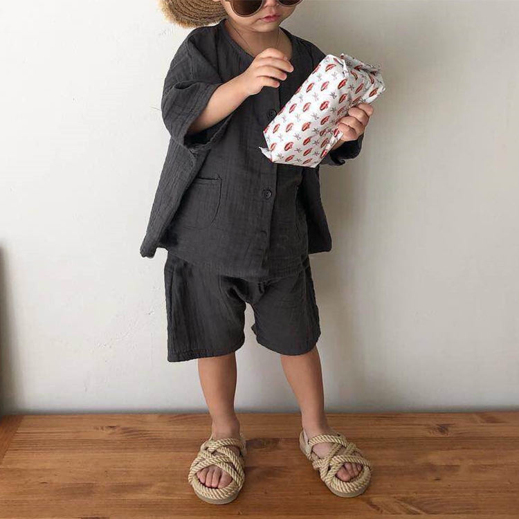 ชุดเสื้อผ้าเด็กสีสันสดใสแบบใหม่พิเศษ ชุดเด็กชายและเด็กหญิงสำหรับฤดูร้อน ชุดเด็กทารกผ้าฝ้ายทอ