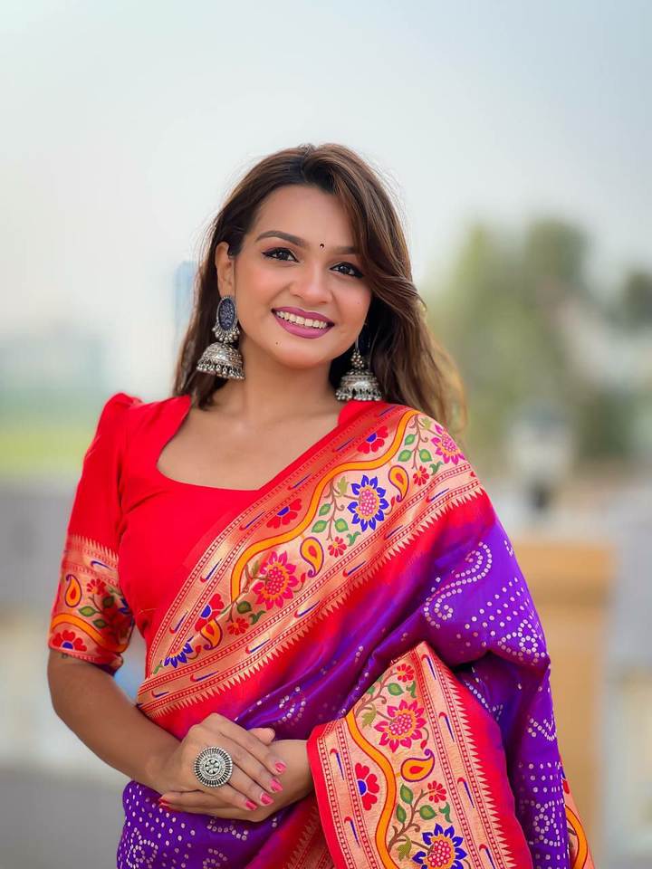 ชุดพิมพ์ลาย Bandhani Paithani สำหรับผู้หญิงสำหรับใช้ในโอกาสพิเศษและชุดต้อนรับ
