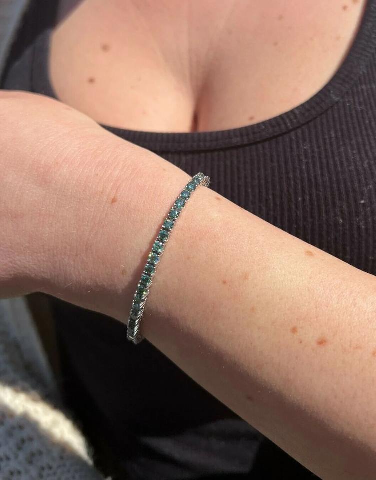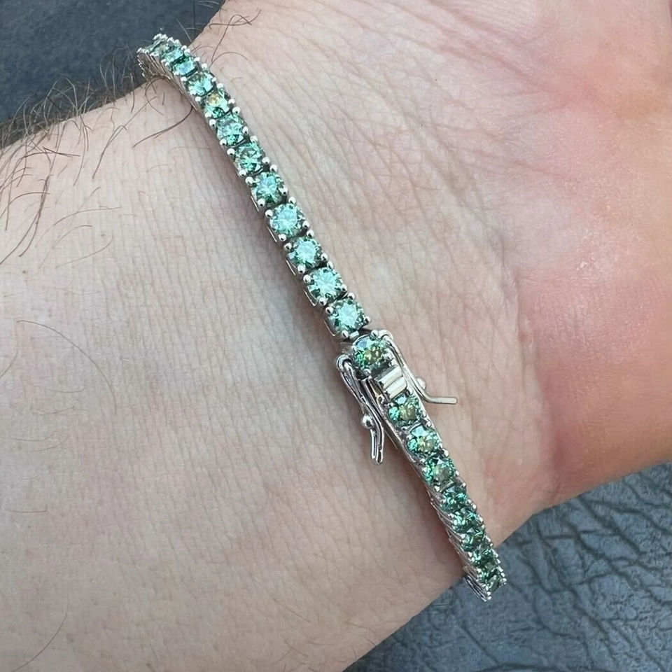 สร้อยข้อมือเทนนิสโมอิสซาไนต์สีเขียวขนาด 3 มม. ชุบทองคำขาว 925 เครื่องประดับเรียบหรู ราคาพิเศษ