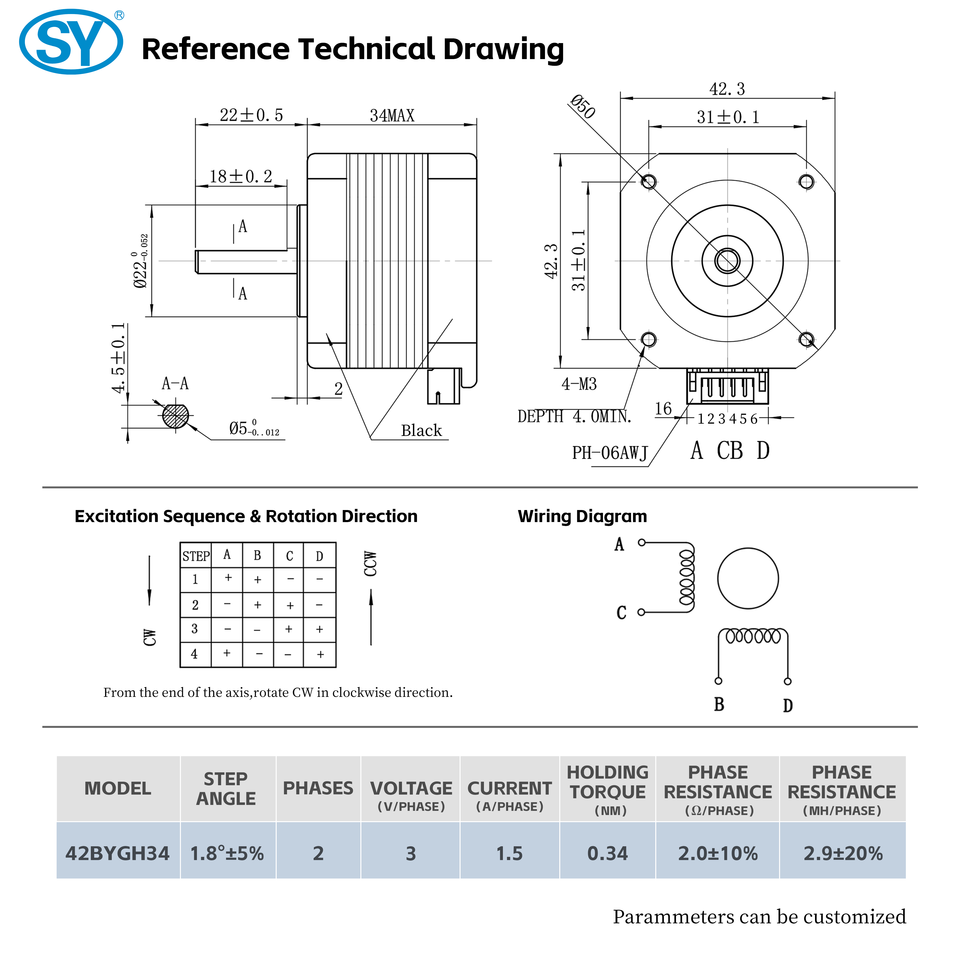 34mm Nema 17หมายเลขรุ่น