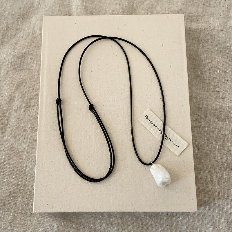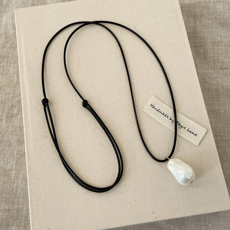 จี้มุกรูปทรงพิเศษ สร้อยคอยาวเชือกสีดำ สำหรับผู้หญิง เรียบง่าย แฟชั่นระดับไฮเอนด์ แมทช์ได้กับทุกชุด