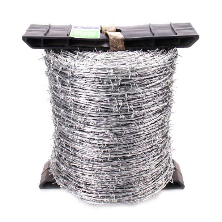 ลวดหนามเหล็กชุบสังกะสีแรงดึงสูงแบบย้อนกลับบิดสองชั้น500เมตรรั้วสนามกลางแจ้งพิเศษ