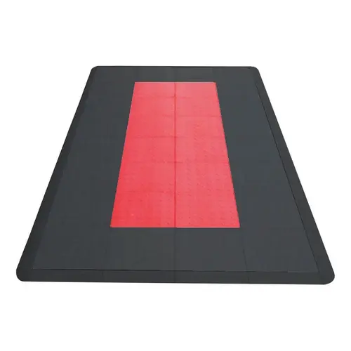 Speedway เสื่อปูพื้นโรงรถสีดำ/แดงแบบปรับแต่งได้เสื่อรถไนล่อนโพลีเอสเตอร์พีวีซีสำหรับห้องนั่งเล่นใช้งานกลางแจ้ง