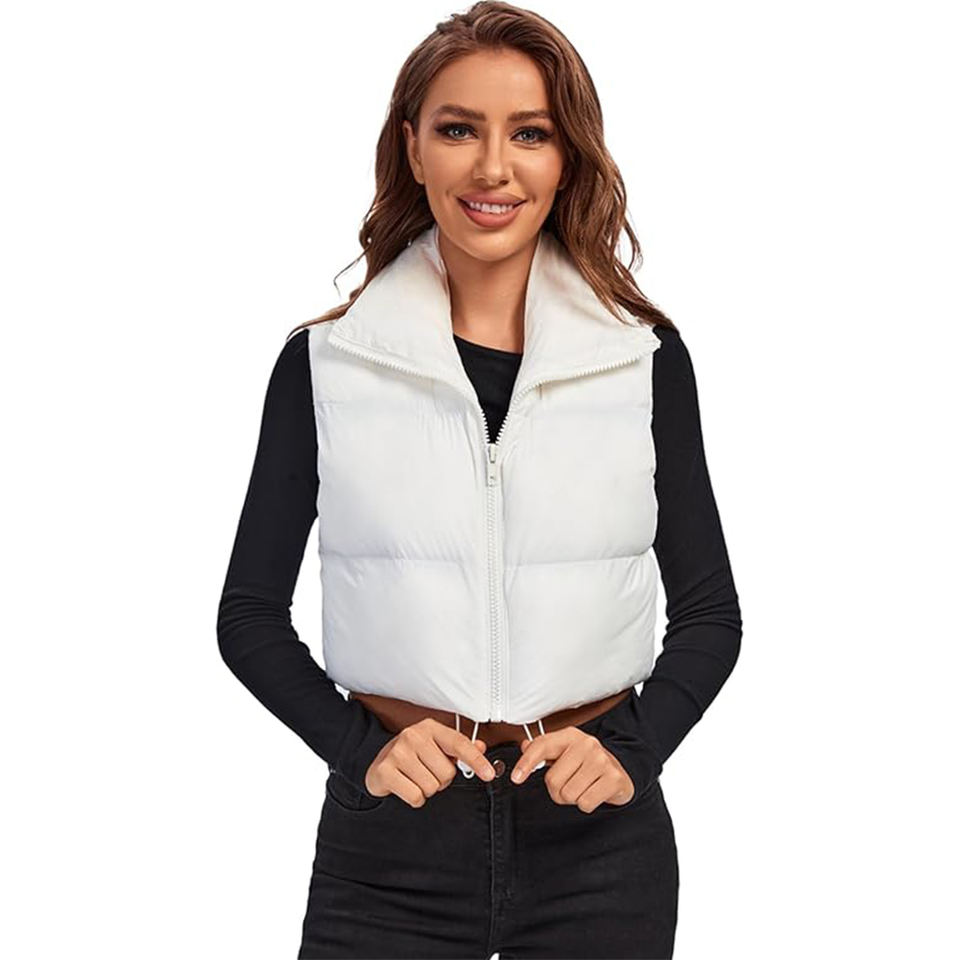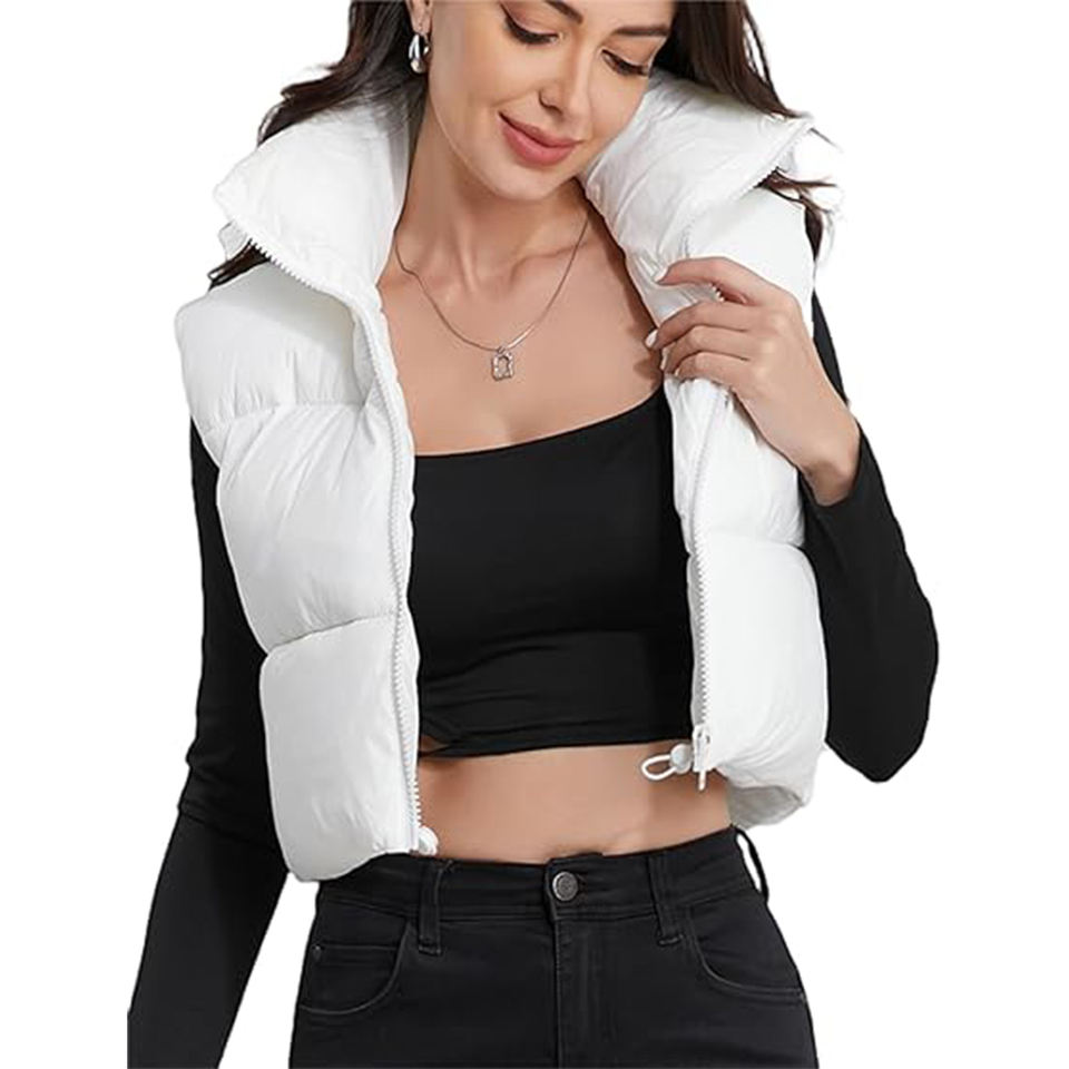 Speedy Industry Padded Crop Vest High Stand Collar Lightweight Zip Crop Puffer Gilet