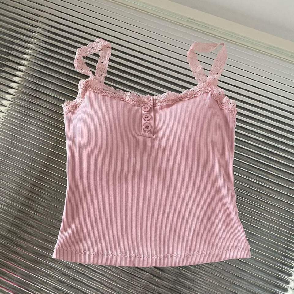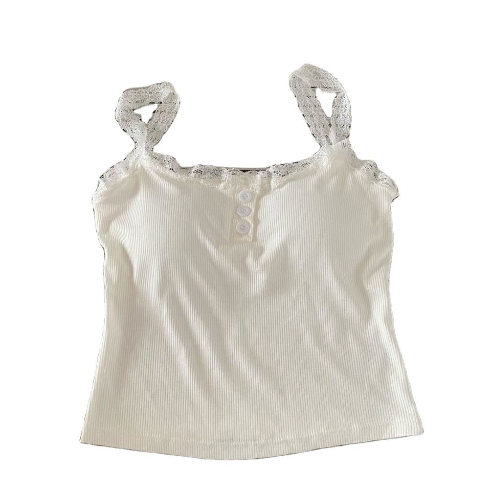 เสื้อแขนกุดมีสายคล้องคอลายลูกไม้สไตล์สาว Spice พร้อมแผ่นรองหน้าอกสวมใส่ด้านนอกกระดุมช่องเซ็กซี่