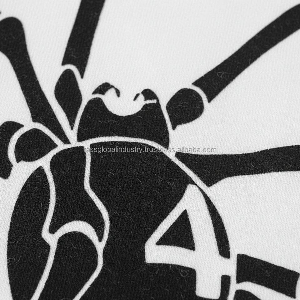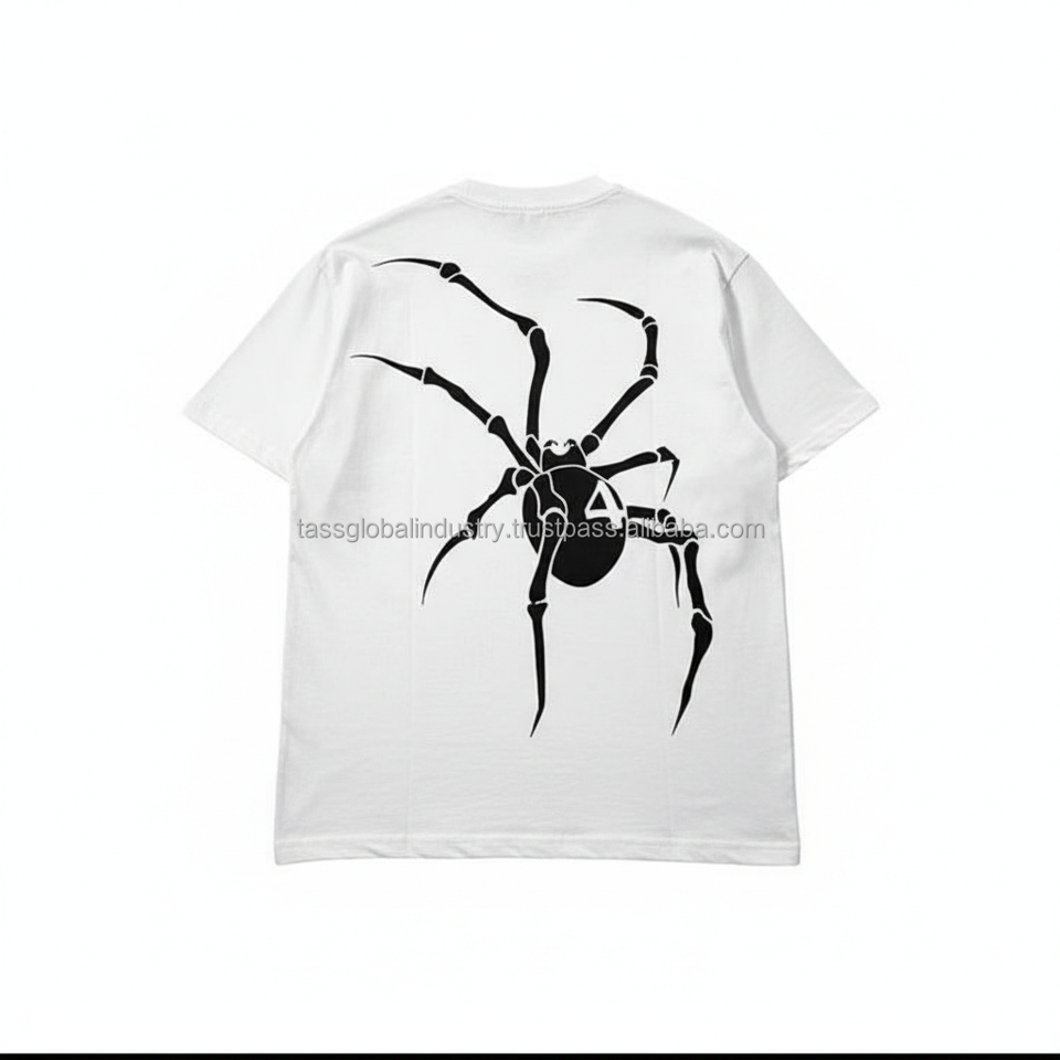 เสื้อยืดลายกราฟิกแมงมุม ดีไซน์มินิมอลรูปเงาแบล็ควิโดว์ สีขาว ทรงโอเวอร์ไซส์ ไหล่ตก สไตล์สตรีทแวร์ ผ้าฝ้าย 100% พิมพ์ลาย