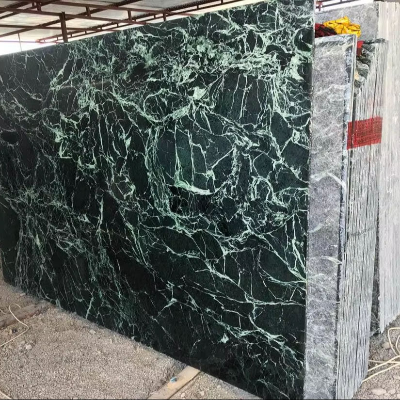 กระเบื้องแผ่นหินอ่อนแมงมุมสีเขียวขัดเงาทันสมัยแผ่นหินอ่อนสีเขียวแคลไซต์ธรรมชาติขัดเงาทันสมัยสำหรับห้องน้ำโรงแรมพื้นวิลล่า