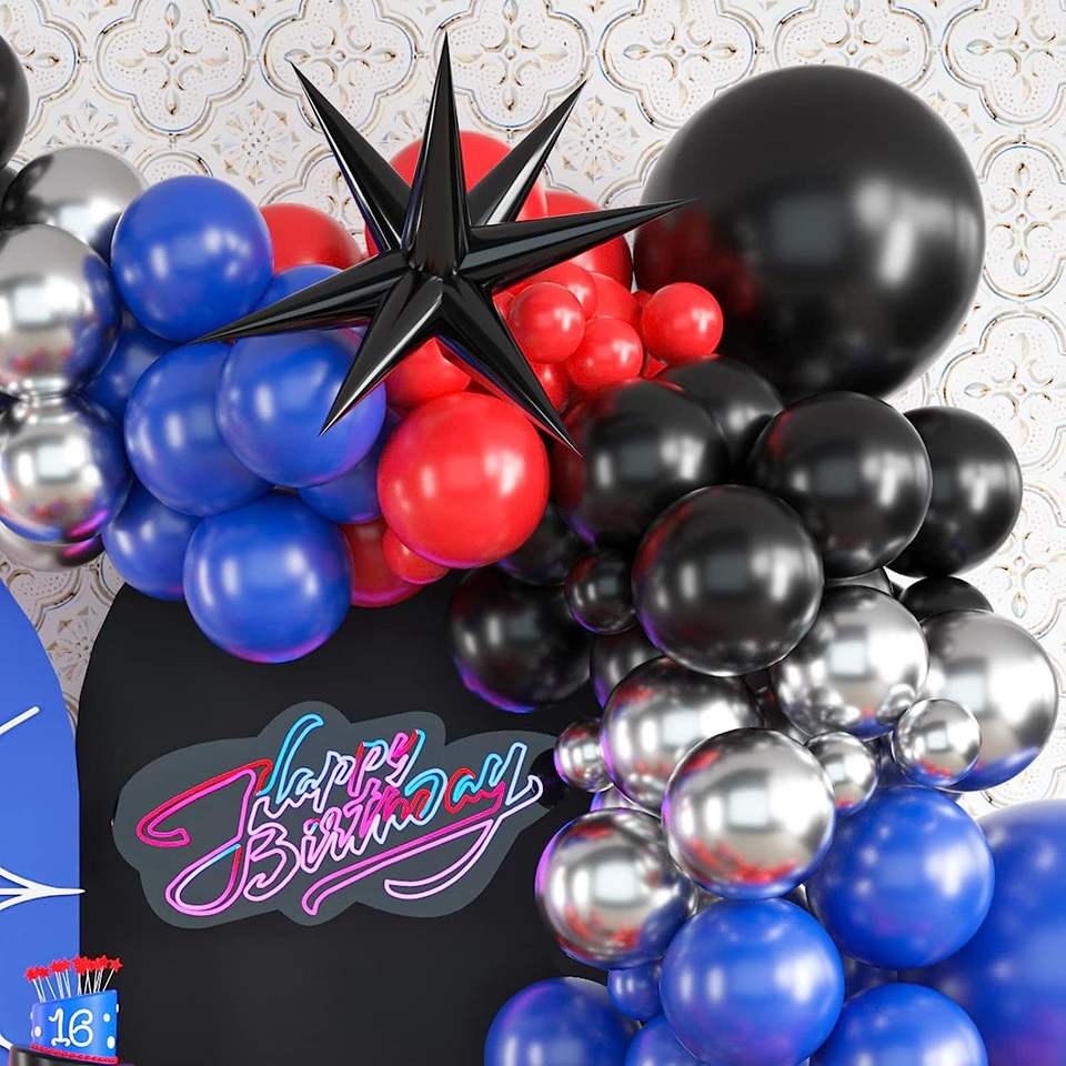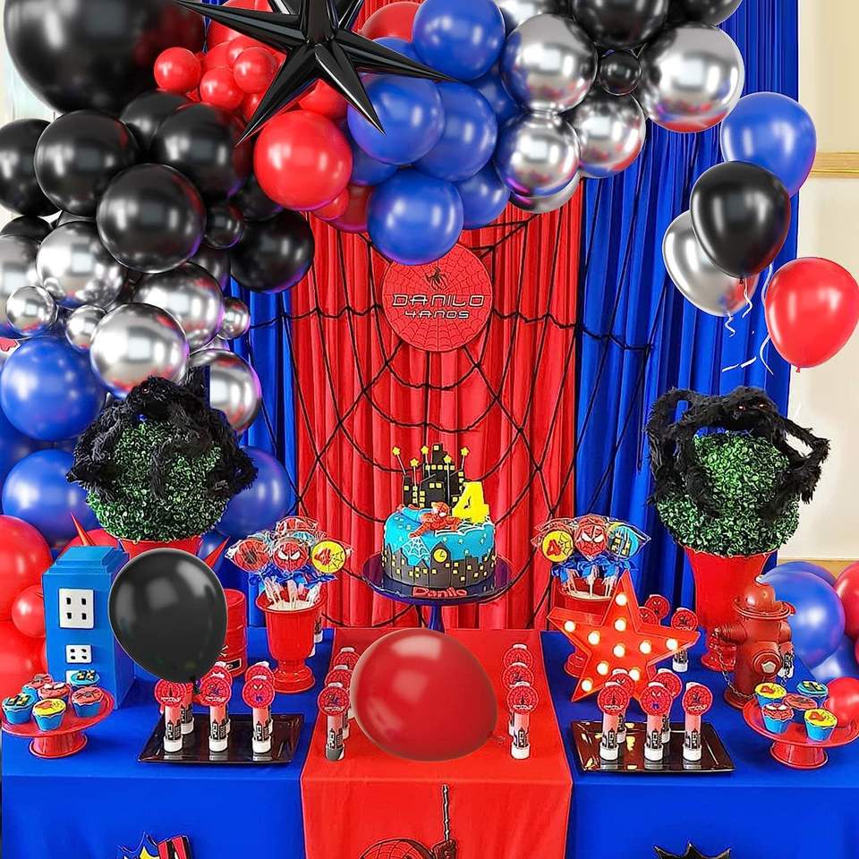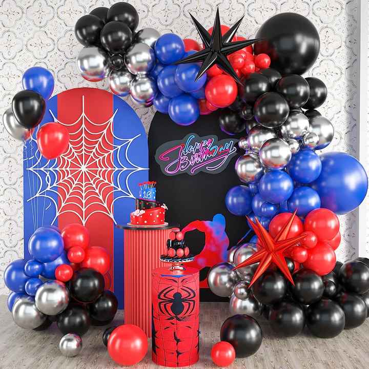 Spider-Man Theme Balloon Arch Balloon Chain Birthday Party Set Boys Black Red the Avenger