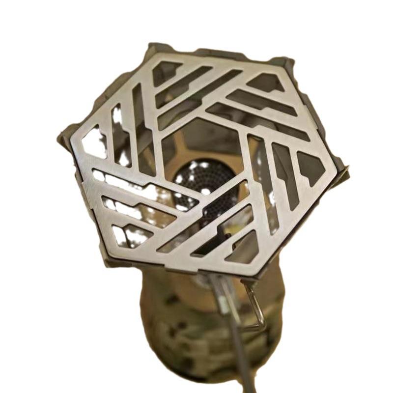 ฝาครอบกันลมสำหรับเตาสไปเดอร์ สแตนเลสทรงหกเหลี่ยม พกพาสะดวก น้ำหนักเบาพิเศษ อุปกรณ์เสริมสำหรับเตาแก๊สแคมป์ปิ้ง