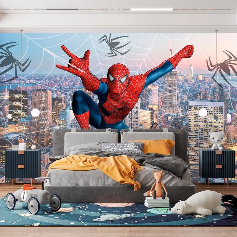 วอลเปเปอร์ติดผนังลายสไปเดอร์แมน วิวเมืองนิวยอร์ก ซูเปอร์ฮีโร่ แบบลอกติดเอง