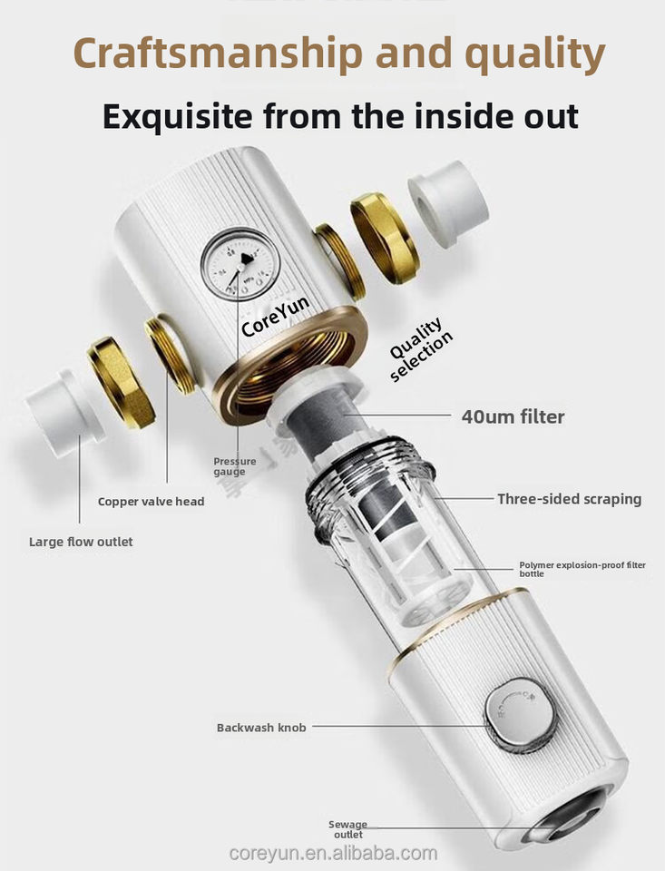 Spin Sediment Filter Reusable Whole House Outdoor Water Filter Pre-Filtration System Household City Well BPA Free Stainless
